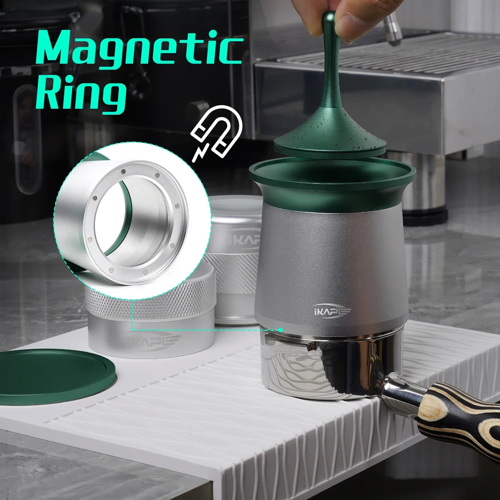 ☕ Magnetic bottom design: IKAPE Coffee Powder Receiver adopts magnetic design, it can be firmly attached to the portafilter, and the coffee powder will not fall off even if you shake it hard.
