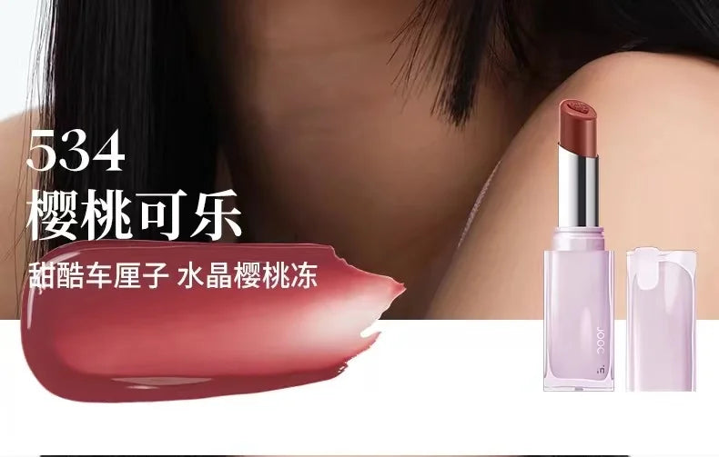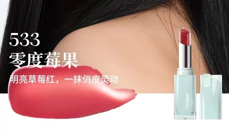Experience the fast film formation of JOOCYEE film-forming crystal frozen lipstick, ensuring a mirror-like gloss without sticking to the cup.