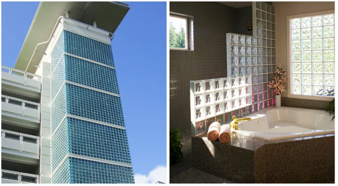 Khối kính rỗng song song màu xám xanh hồng đục sóng biển trong suốt 80.0mm dùng trang trí nhà cửa và xây tường kính
