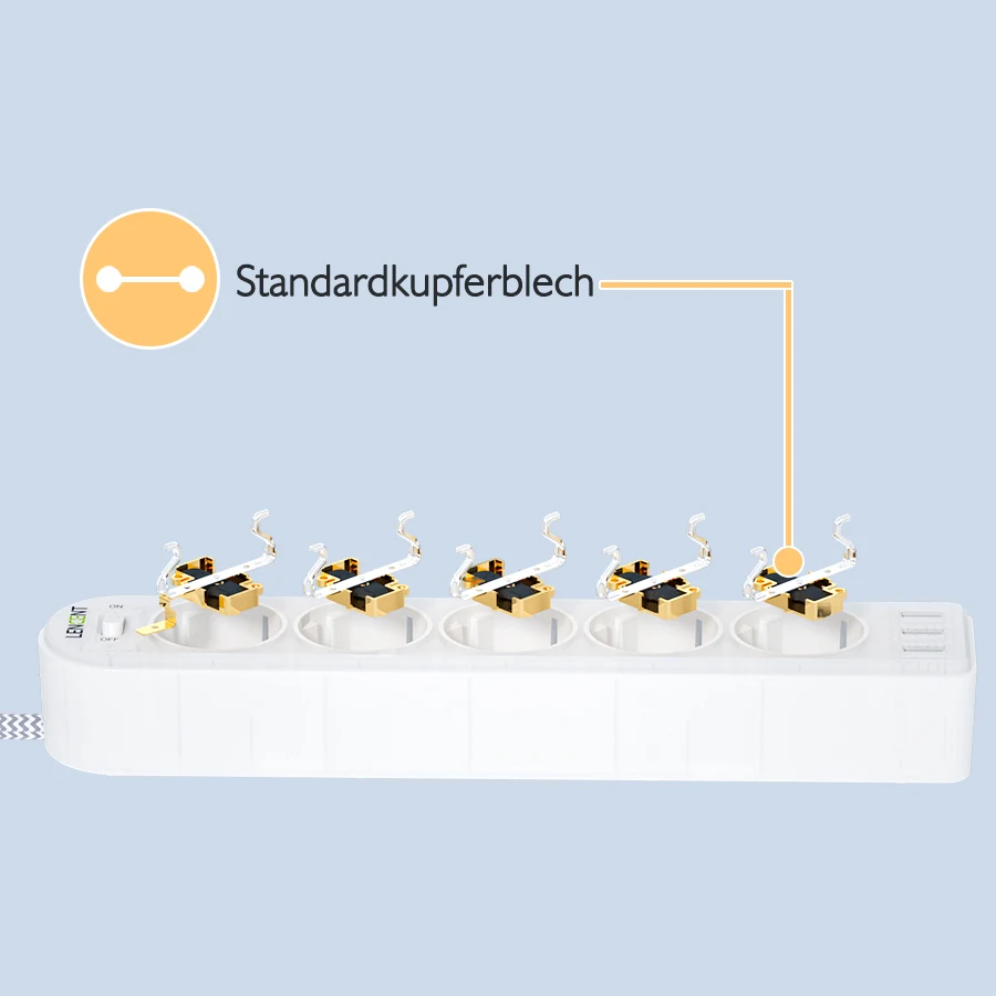 It is equipped with a standard copper cable. Overload protection and flame retardant casing provide complete protection.