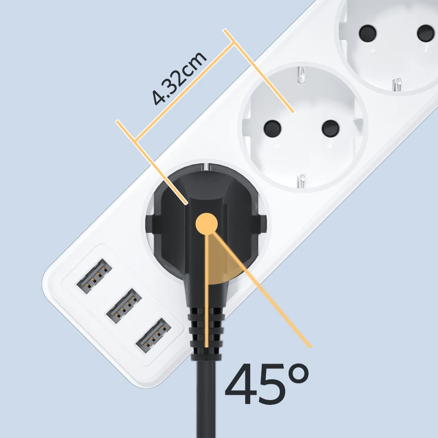 Sockets located at a 45-degree angle for better access; Fastening holes for easy wall mounting to save space.