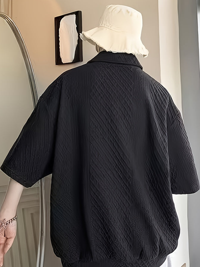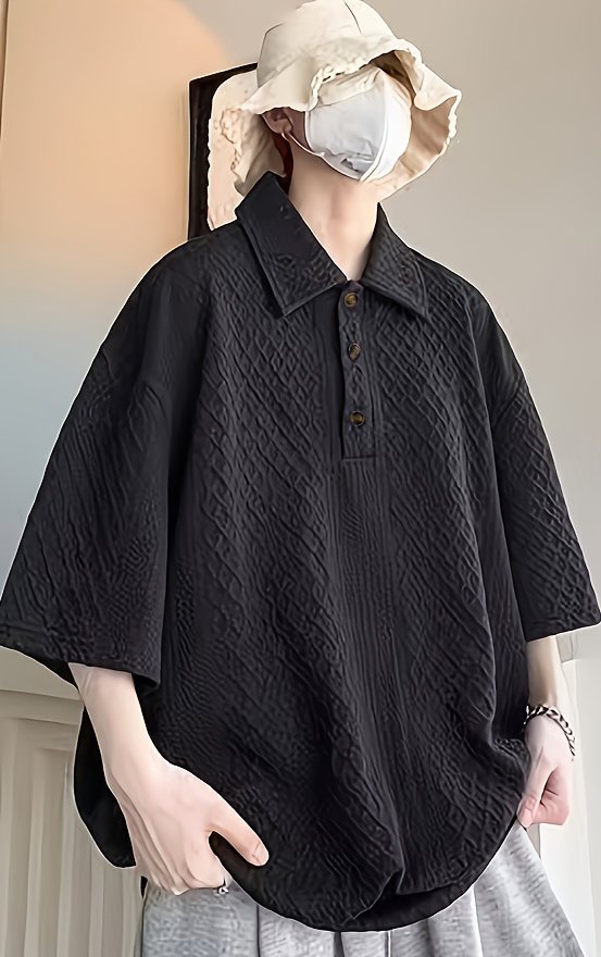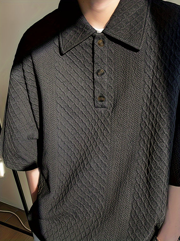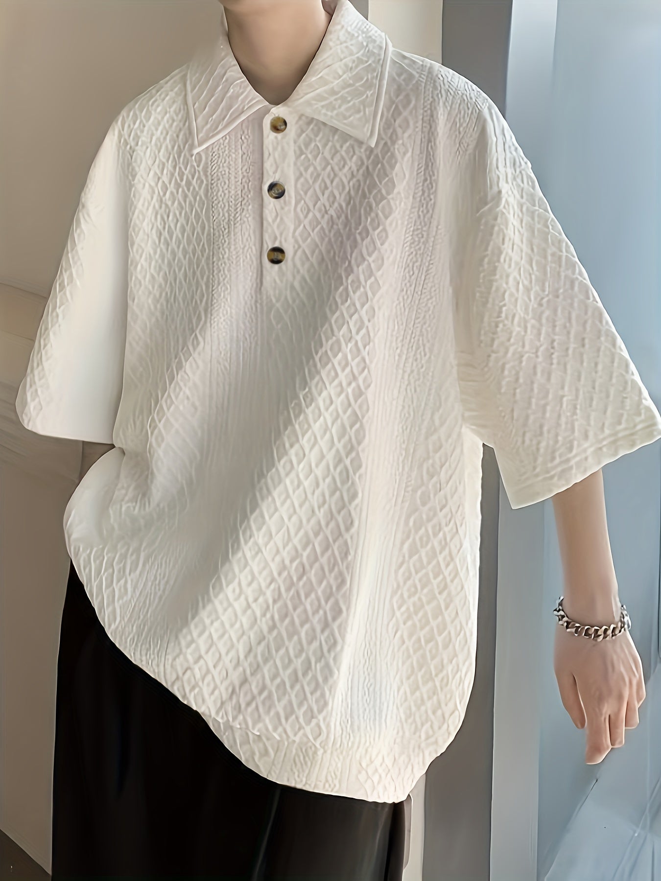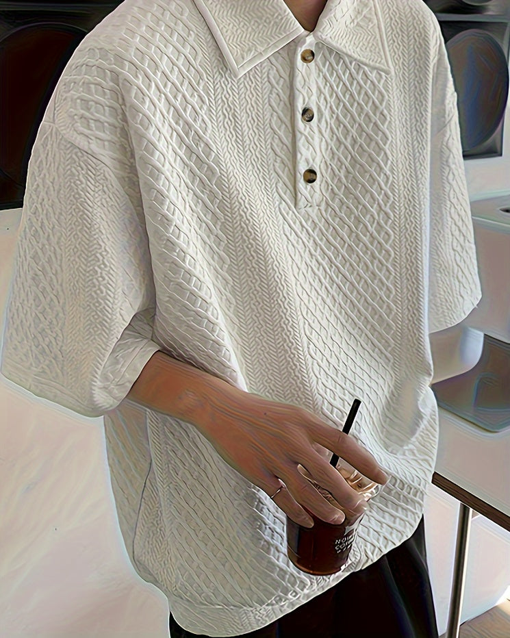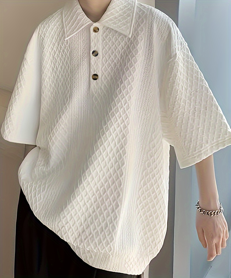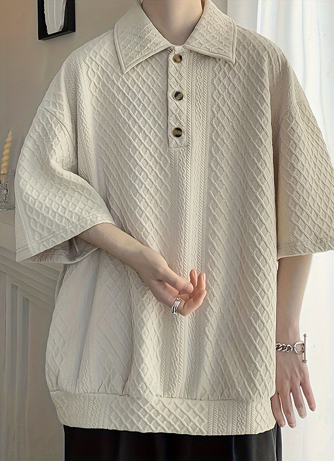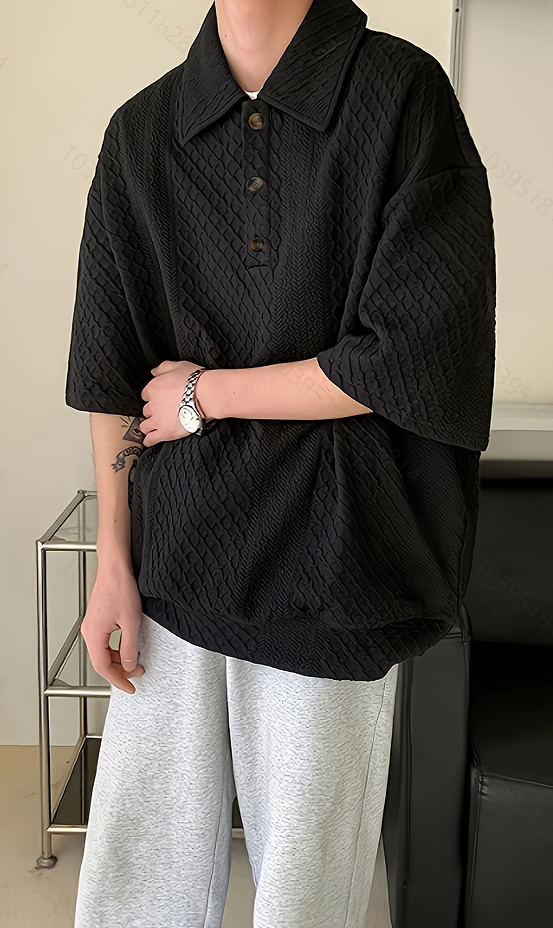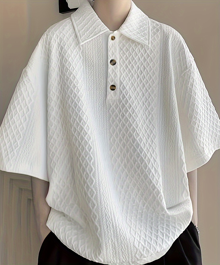 Áo Golf Nam Dáng Rộng, Họa Tiết Hình Học, Tay Ngắn