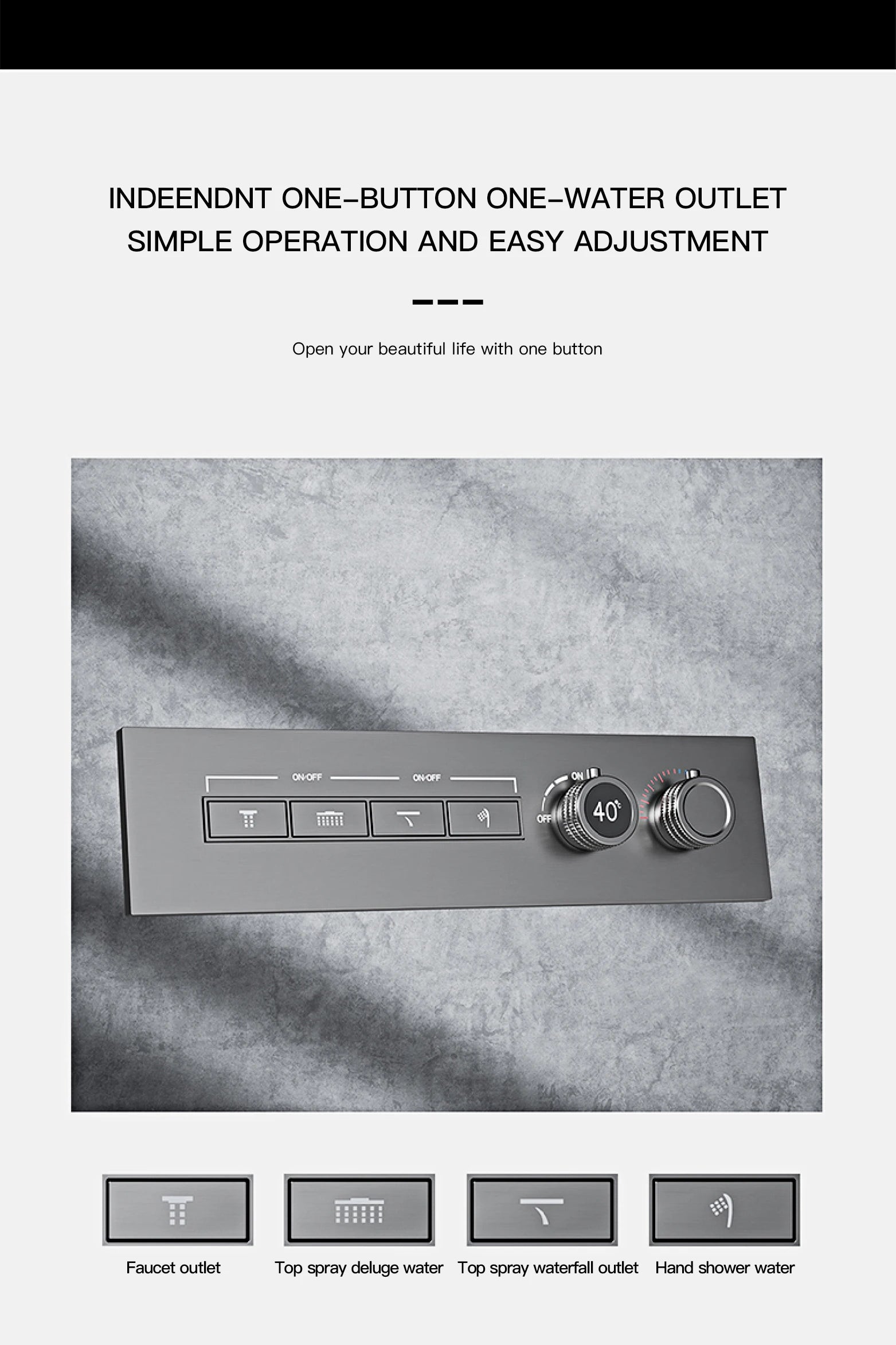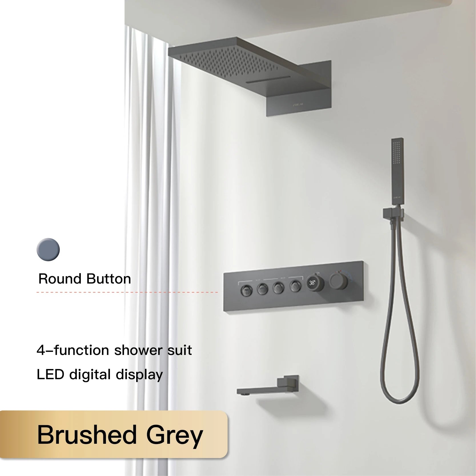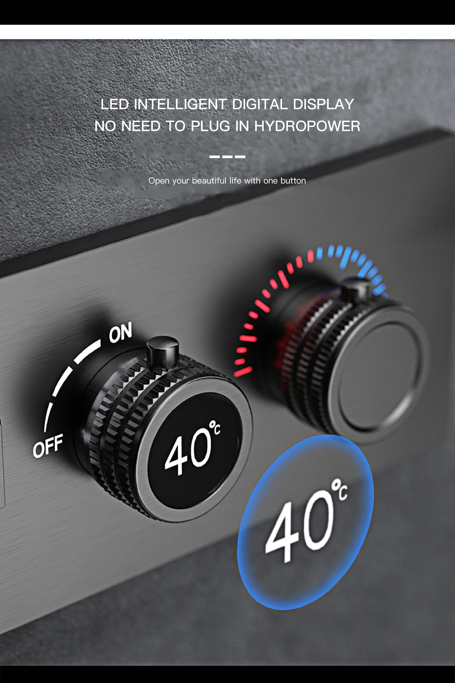 Vòi sen đen đồng thau LED 4 chức năng cao cấp