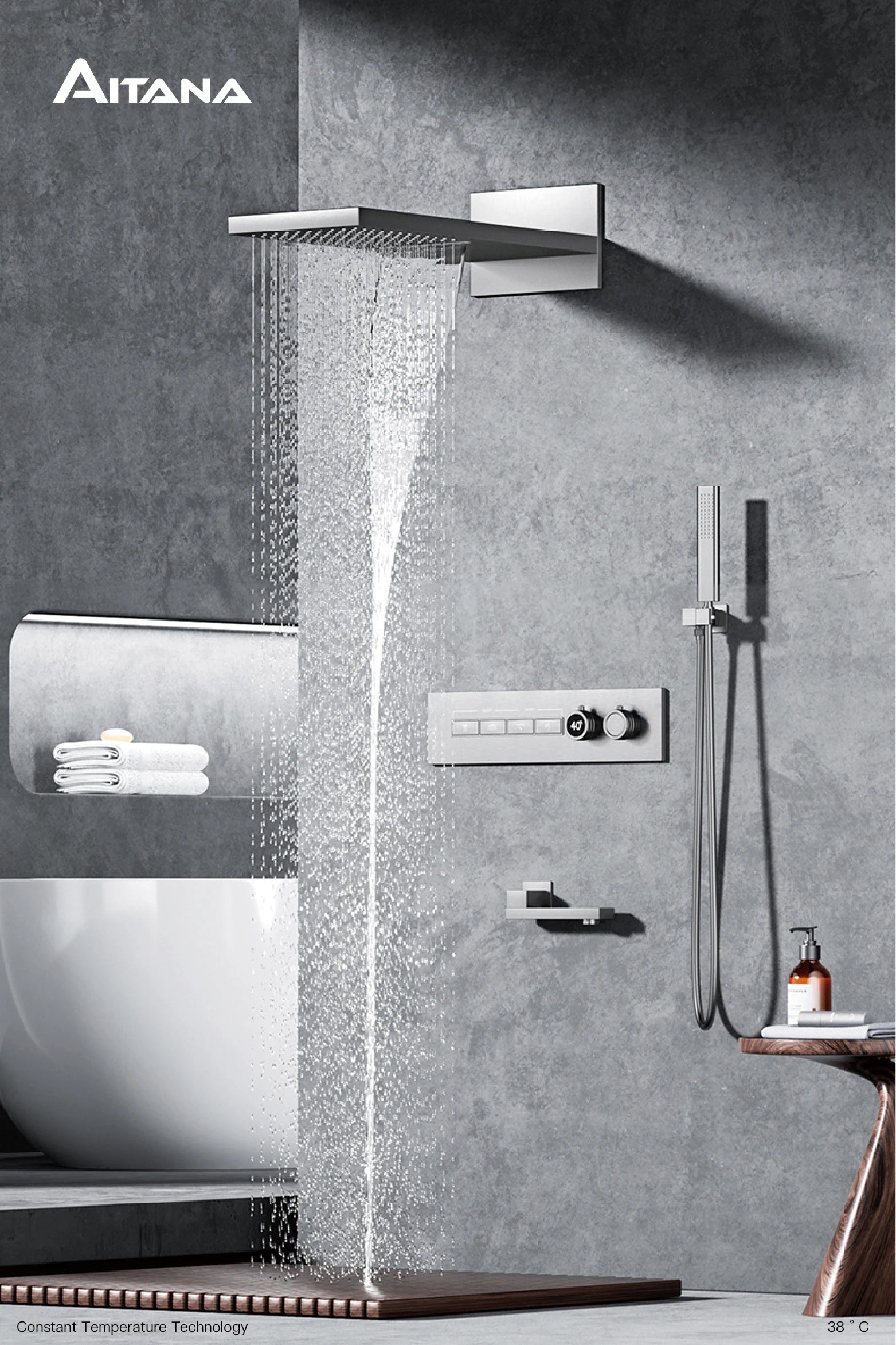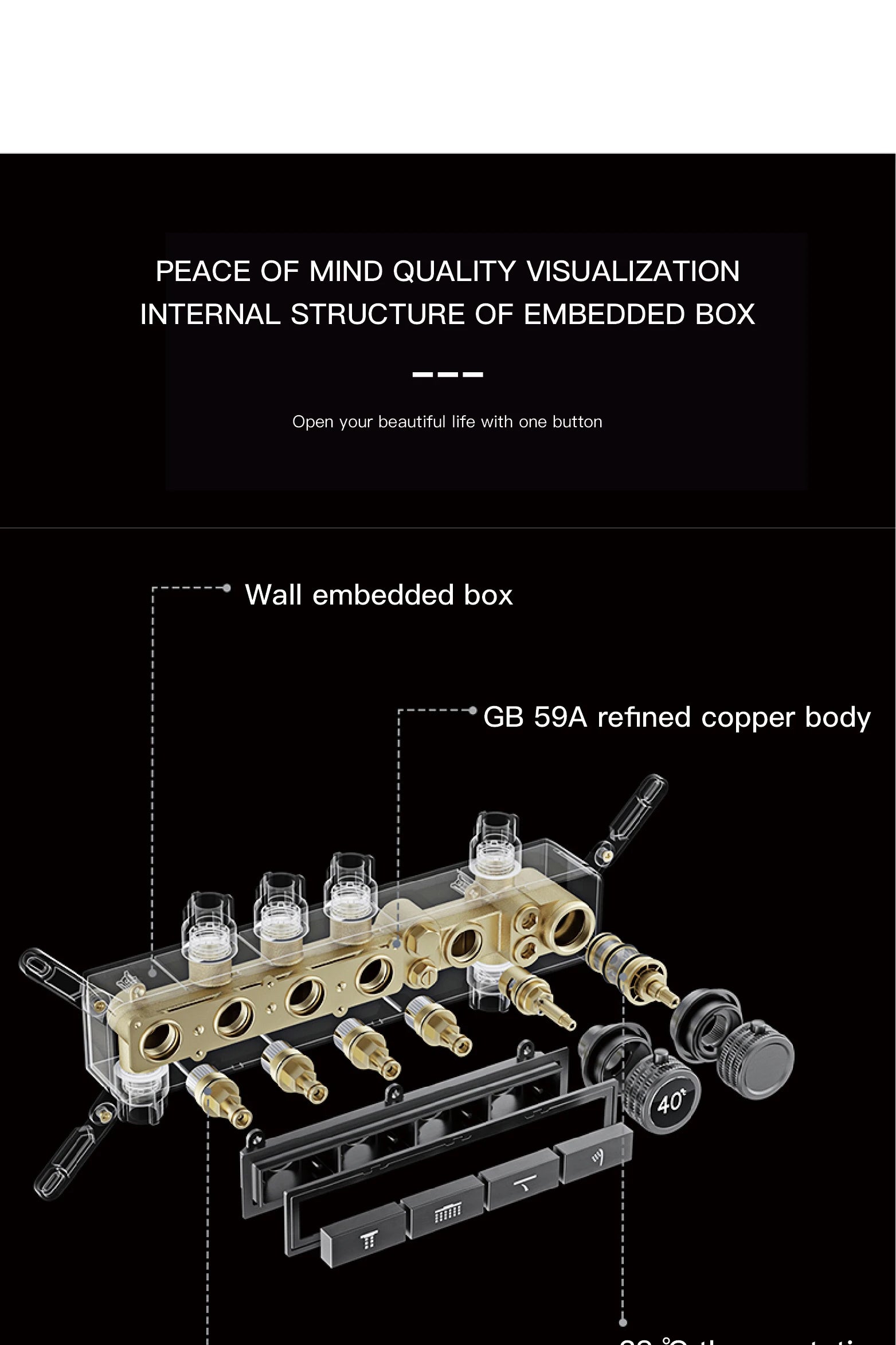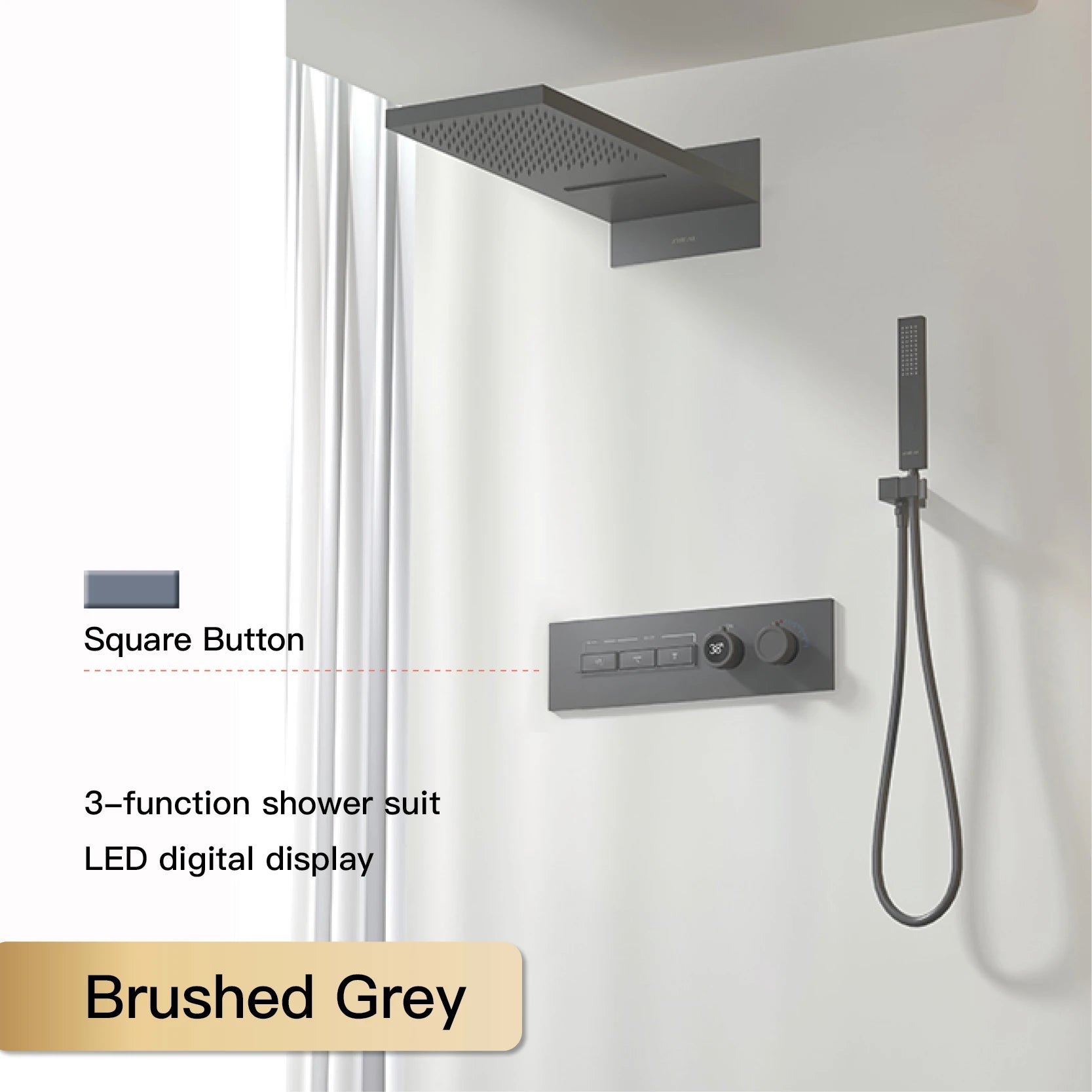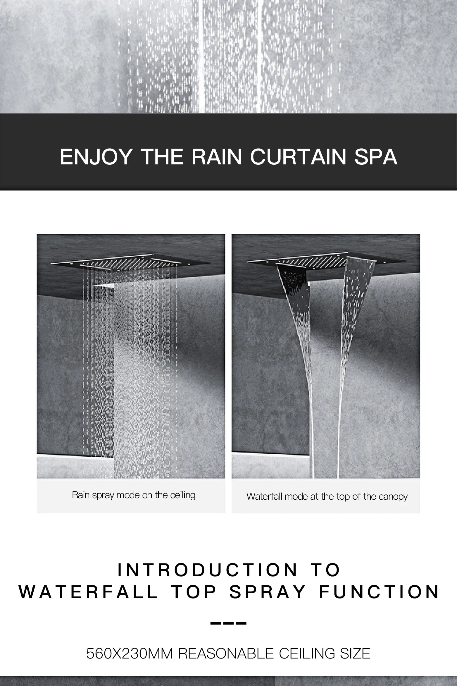 Vòi sen đen đồng thau LED 4 chức năng cao cấp