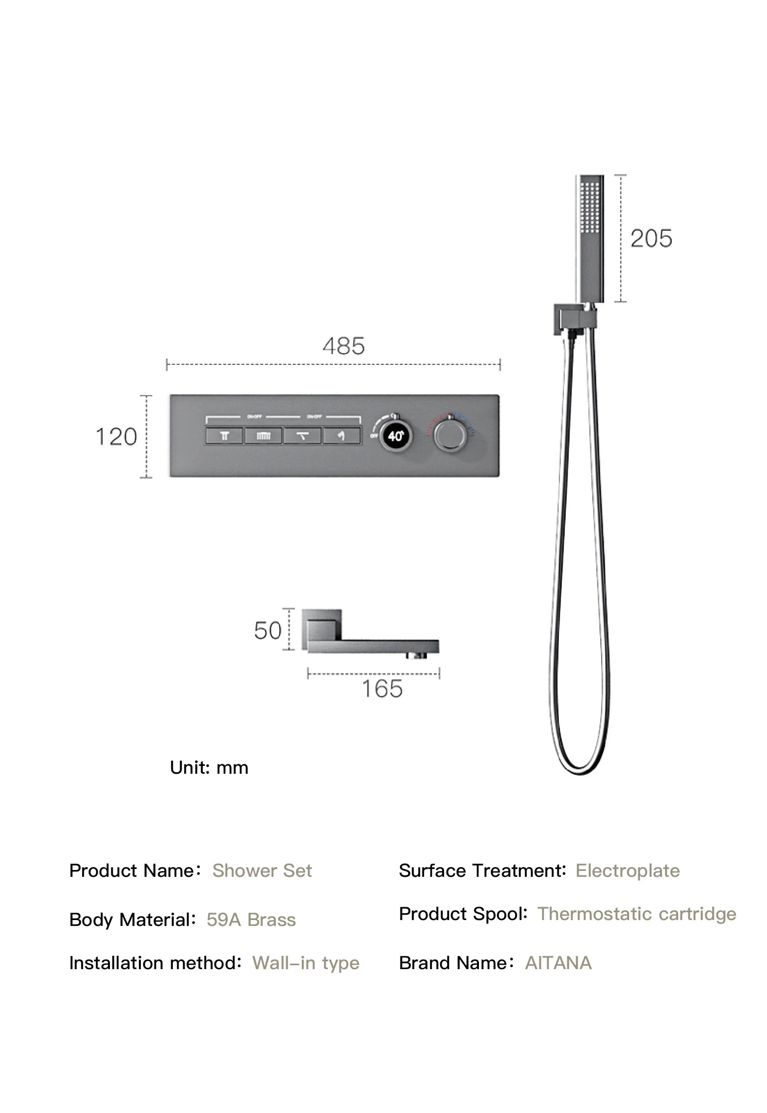 Vòi Sen Đen Cao Cấp LED Hiển Thị Số 4 Chức Năng