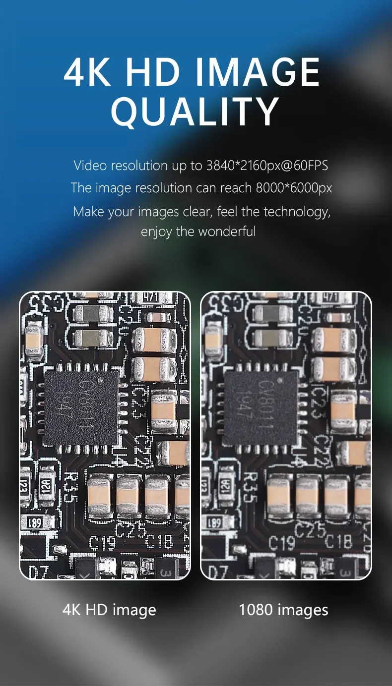 - Video resolution up to 3840*2160@60FPS, the image resolution can reach 8000*6000px, make your images clear, feel the technology, and enjoy the wonderful