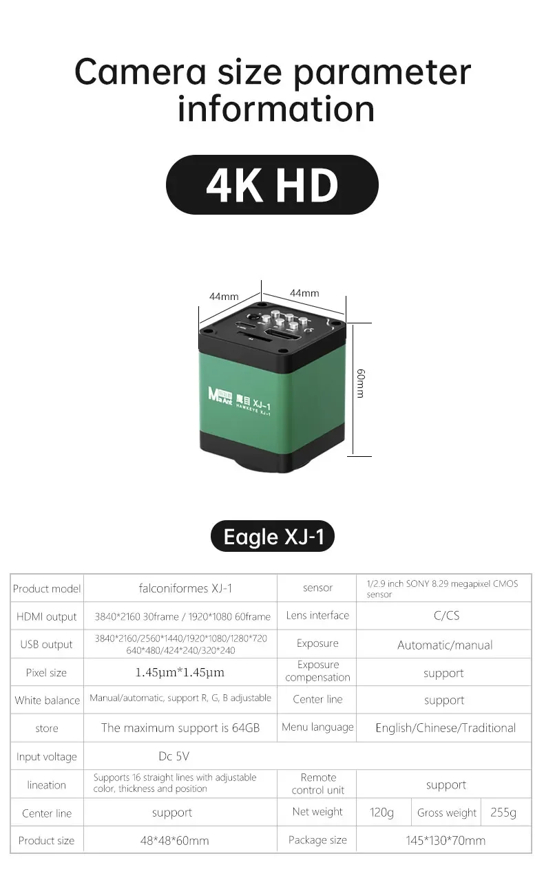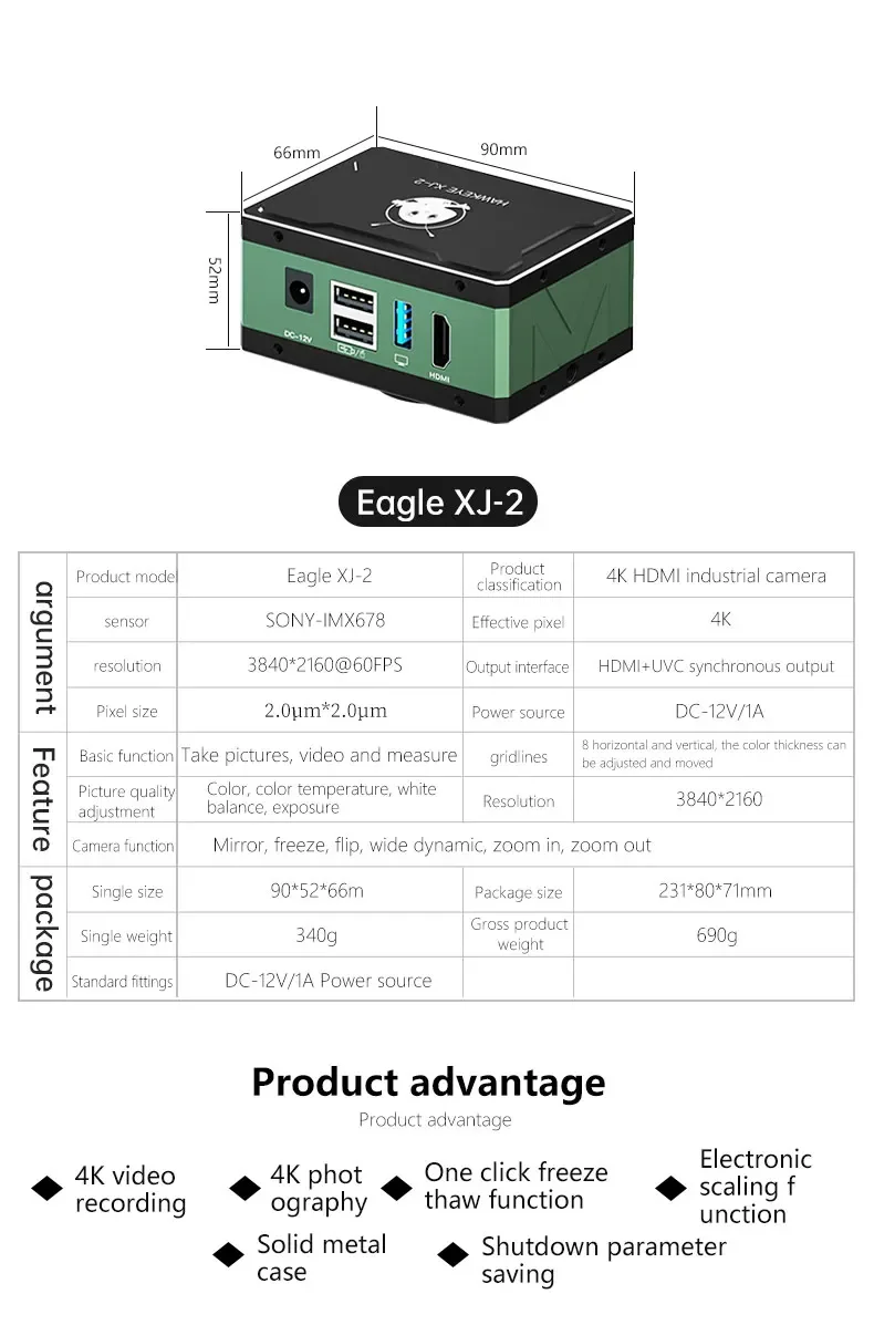 Maant XJ-1 2 4K UHD 30fps Bulit-in S ONY Imx678 1/1.8sensor H DMI and USB Output Digital Industrial Microscope Camera with C Mount