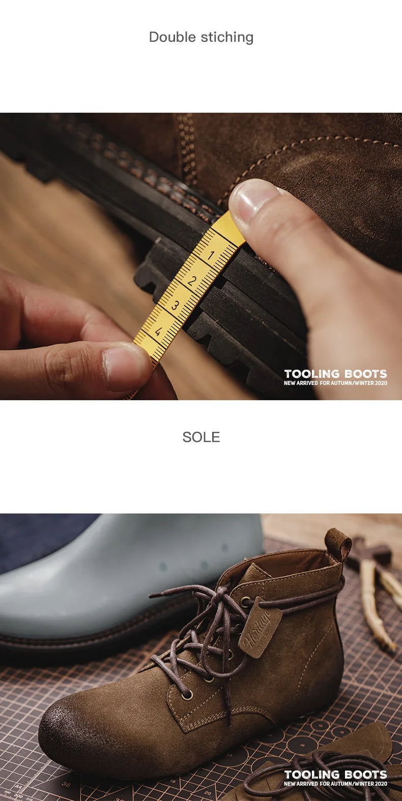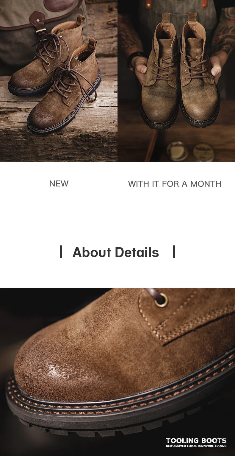 feature 3: Maden Men's Vintage Split Suede Fleece-lined Boots Brown High-Top Work Boots Lace-Up Desert Ankle Rugged Sole Boots Outdoor Winter Fall Shoes