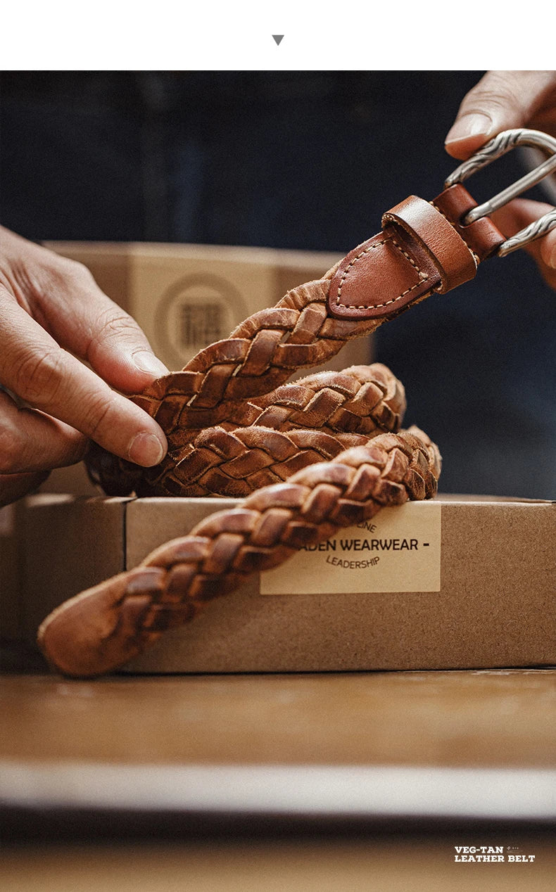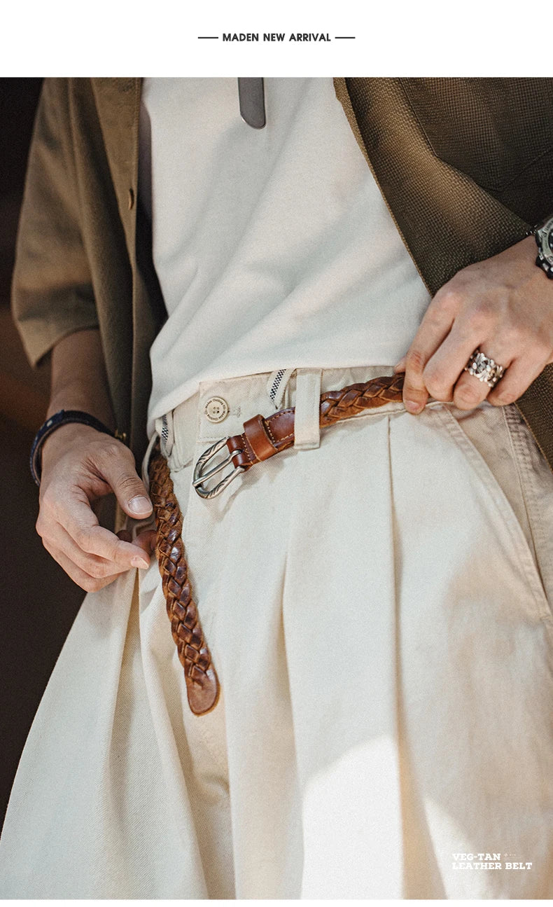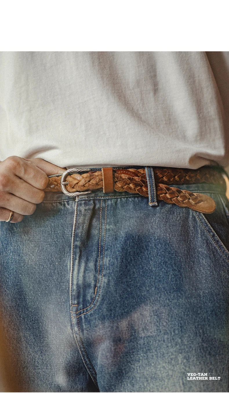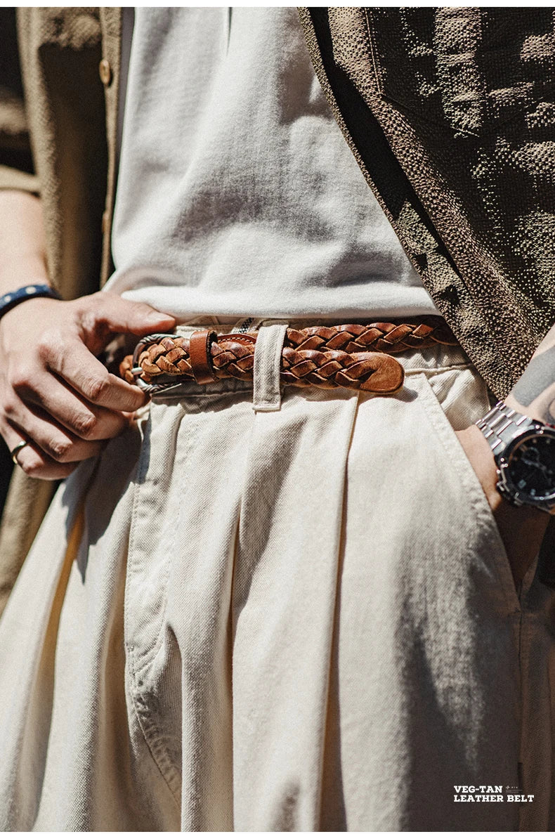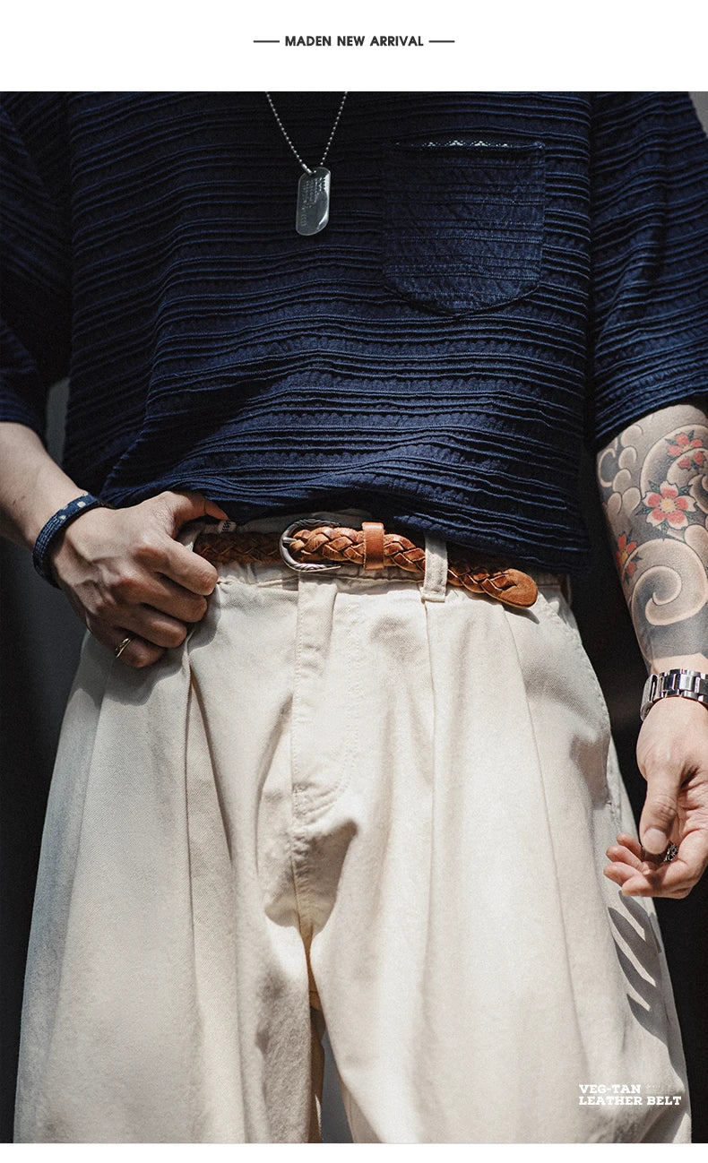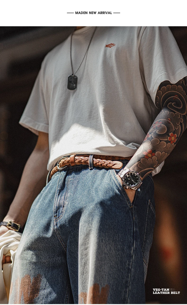 Thắt lưng da bò 2 lớp Vintage nam nâu Maden