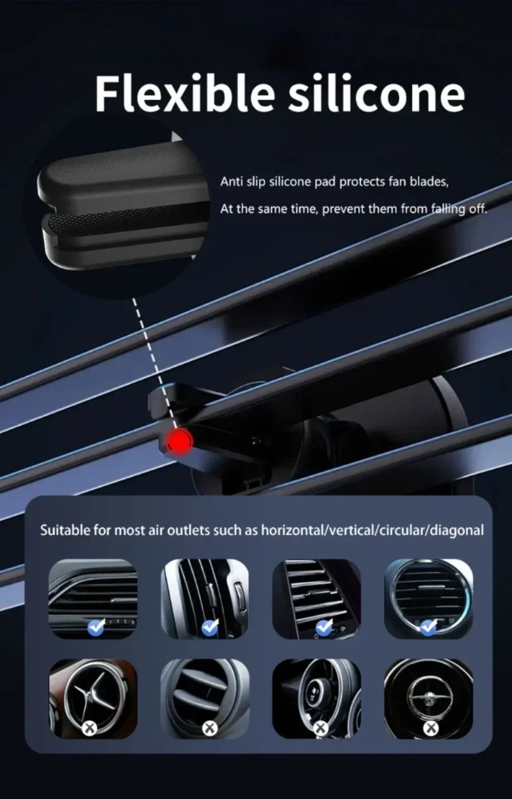 Safe Installation: This car phone holder is equipped with an upgraded version of the ventilation clip, which can securely fix your smartphone on the car's vent.