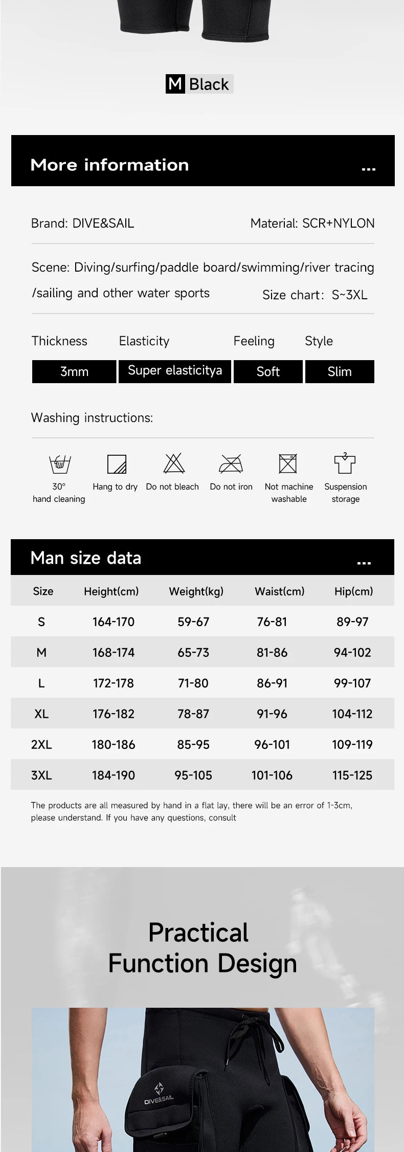 【Dive&Sail Wetsuit Shorts】3mm thickness neoprene and super stretch pants provide added comfort and superior durability, defense against sea lice, jellies and other biological irritants.