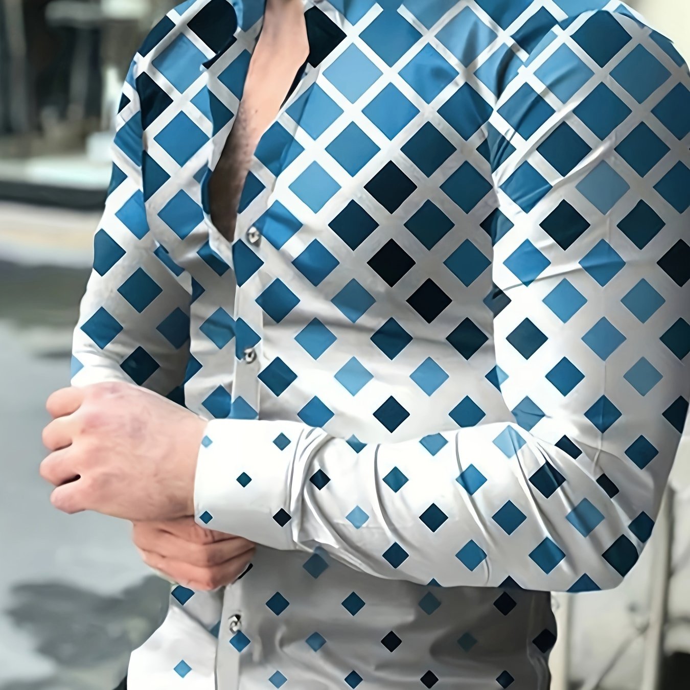 Áo Nam Boho Dài Tay Họa Tiết Xanh Trắng - Thoải Mái & Phong Cách