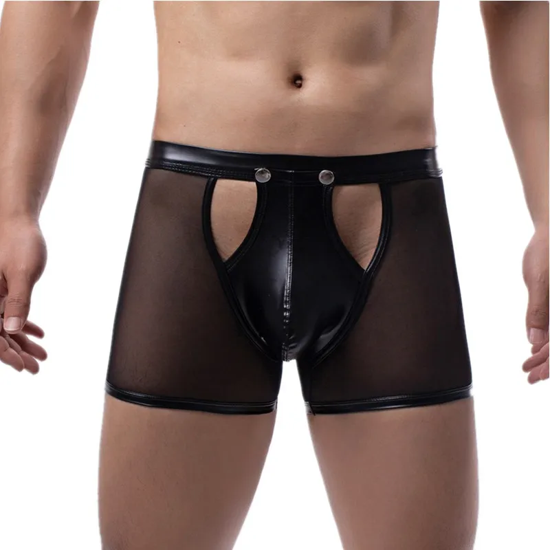 Quần Lót Nam Lưới Trong Suốt Da Giả Tháo Rời