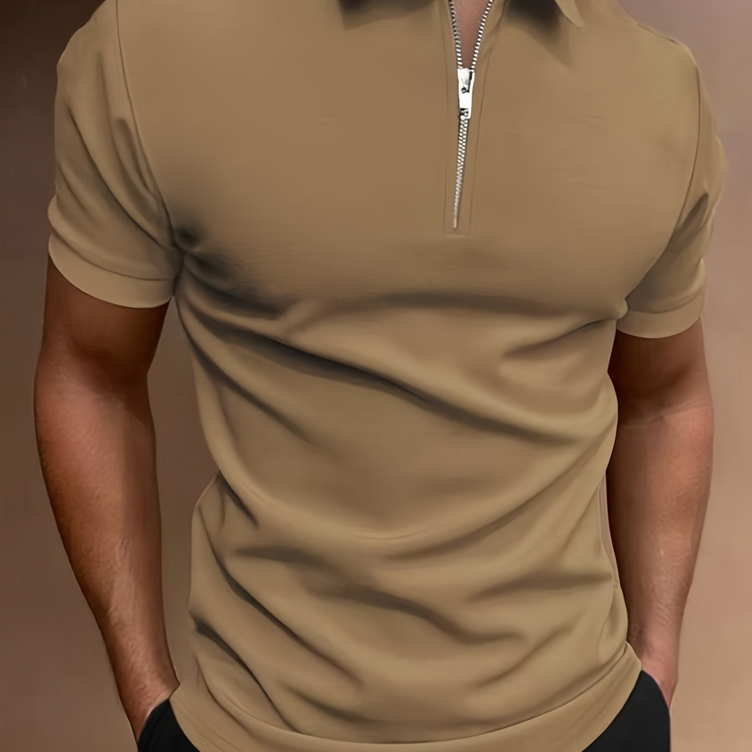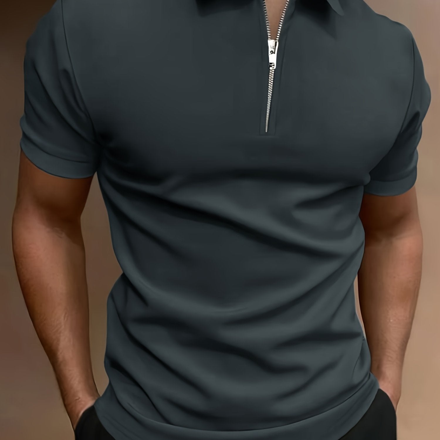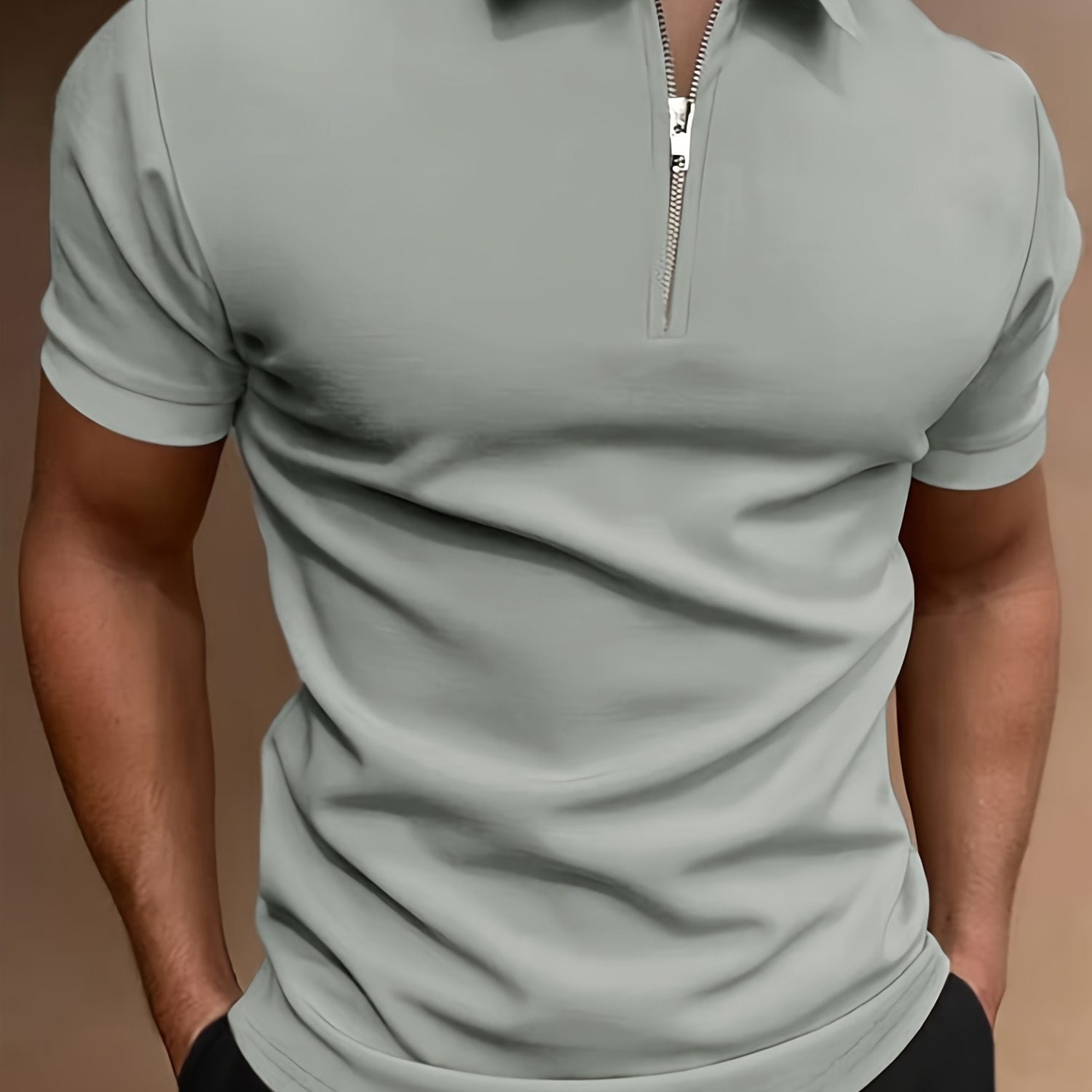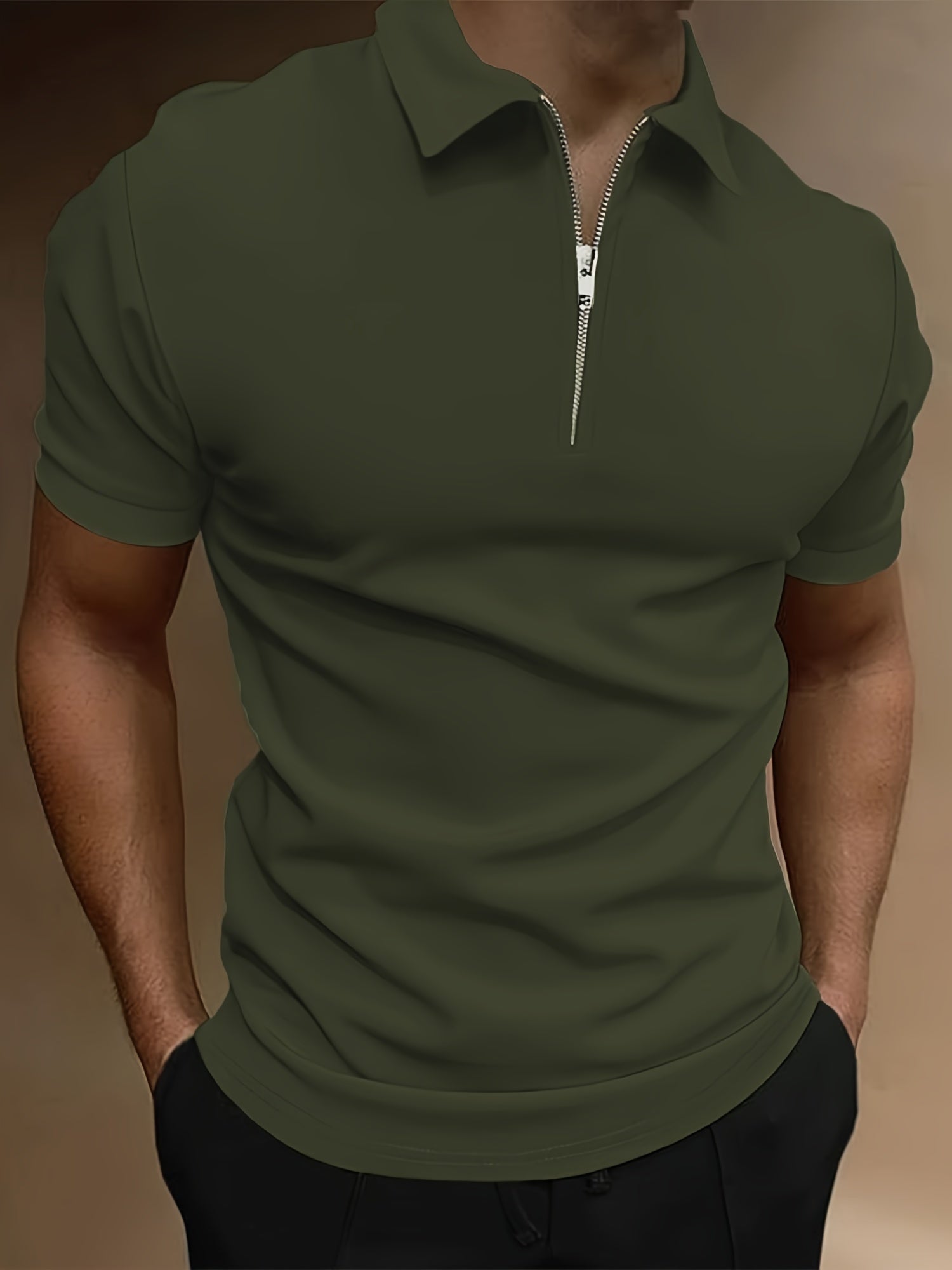 Áo Polo Golf Nam Co Giãn, Khóa Kéo, Màu Trơn, Hè