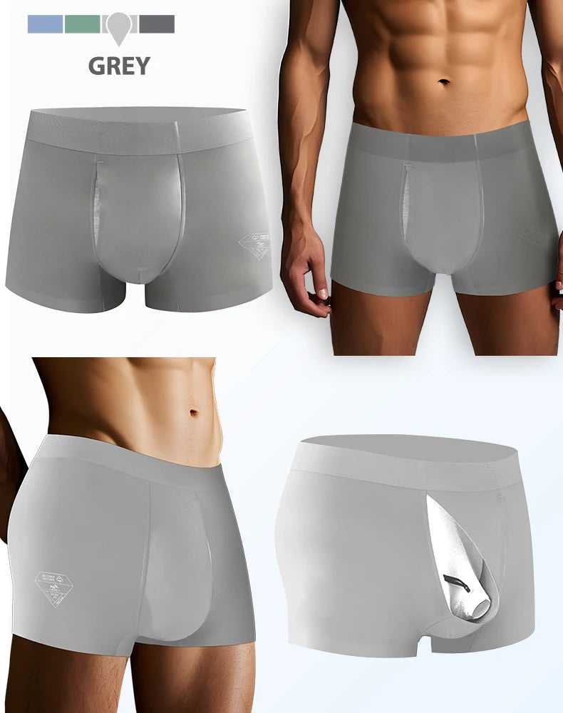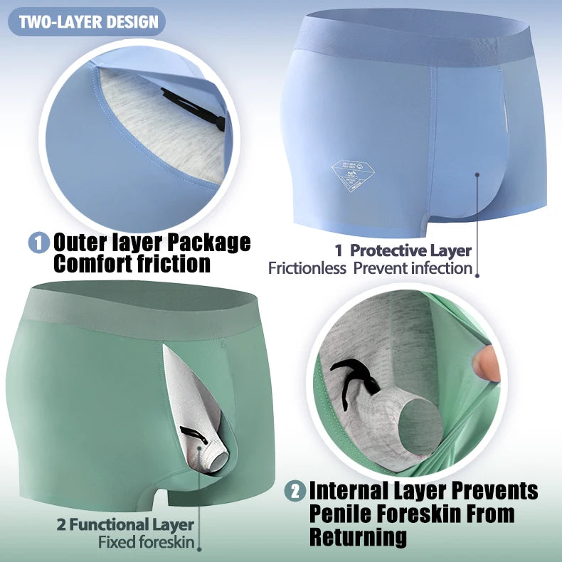 Men's Cooling Silk Underwear for Foreskin Comfort - Breathable Anti-Chafing Boxers, Moisture-Wicking & Hygienic Design for Sensitive Skin