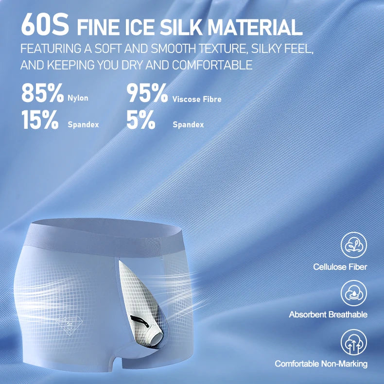 Men's ice silk underwear features seamless elastic bands to prevent curling and meet the needs of different body types.