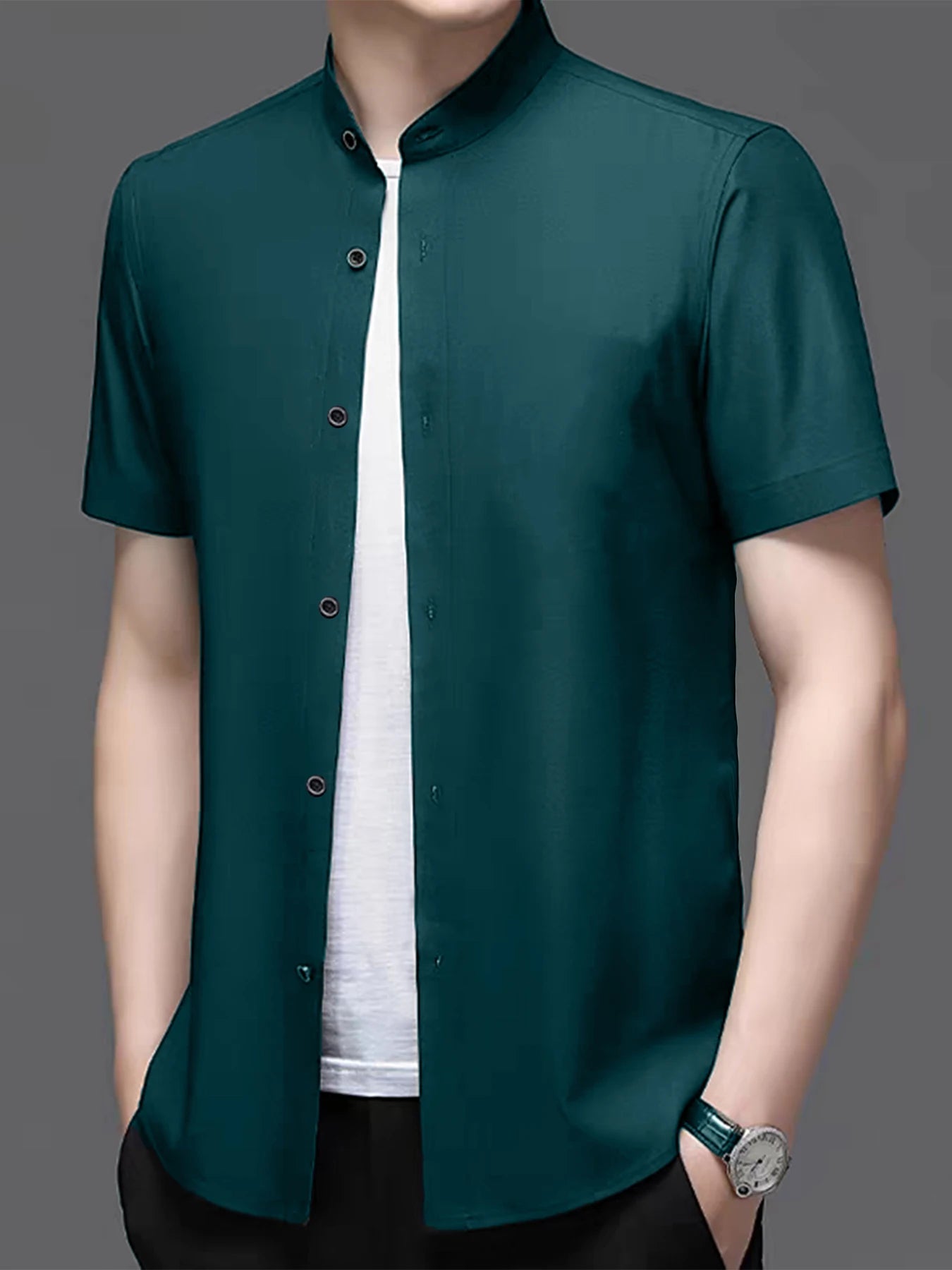 Áo Sơ Mi Nam Cổ Đứng Lịch Lãm Hè Công Sở Cao Cấp