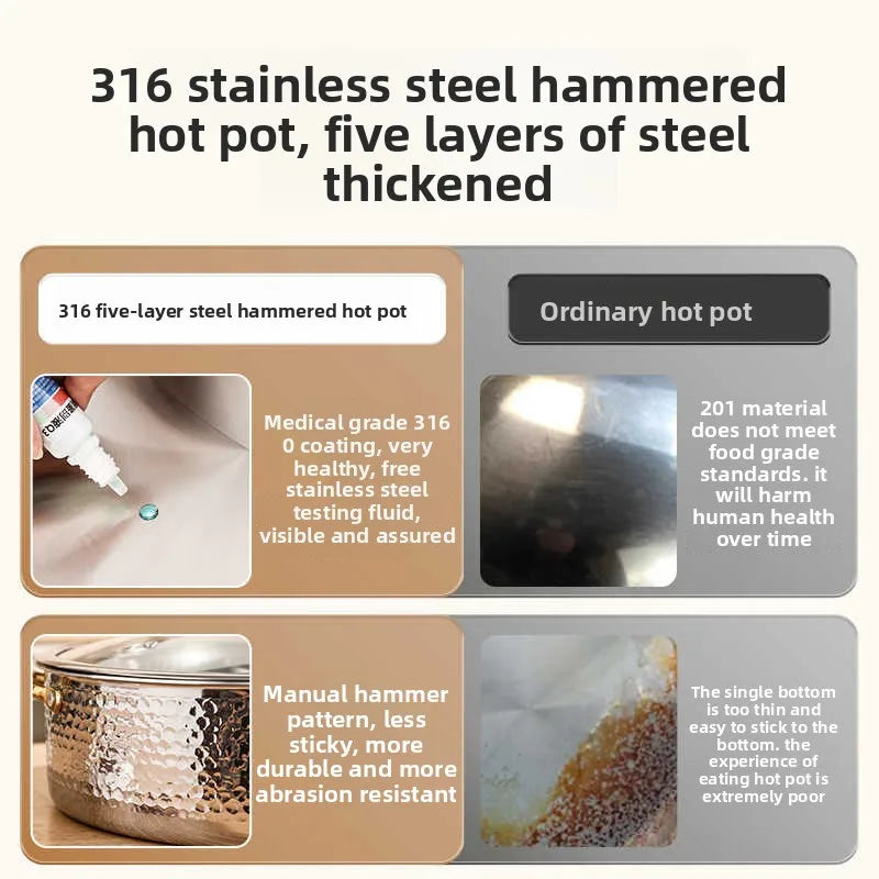 Nồi Lẩu Thép 316 Đa Tầng Hoa Văn Búa Chống Dính