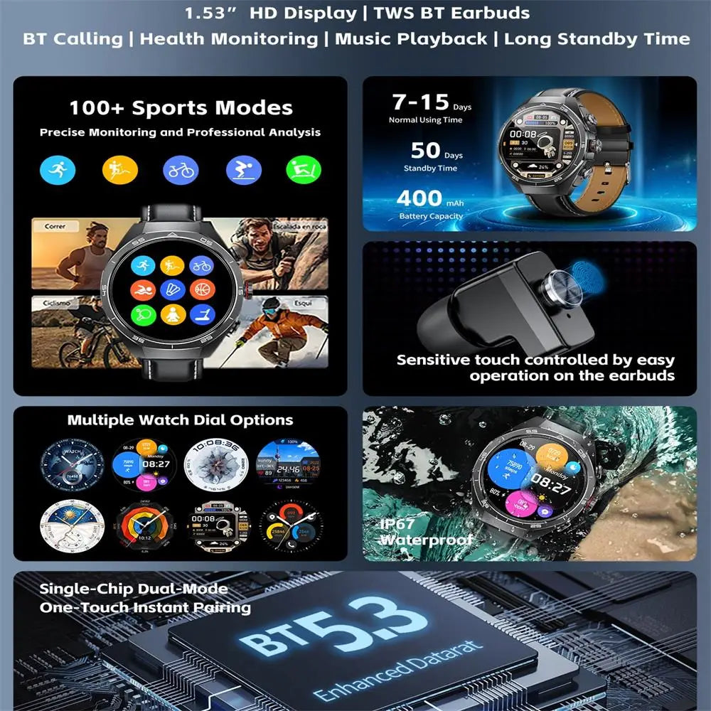 Đồng Hồ Thông Minh TWS 2in1 Chống Nước IP67 Bluetooth