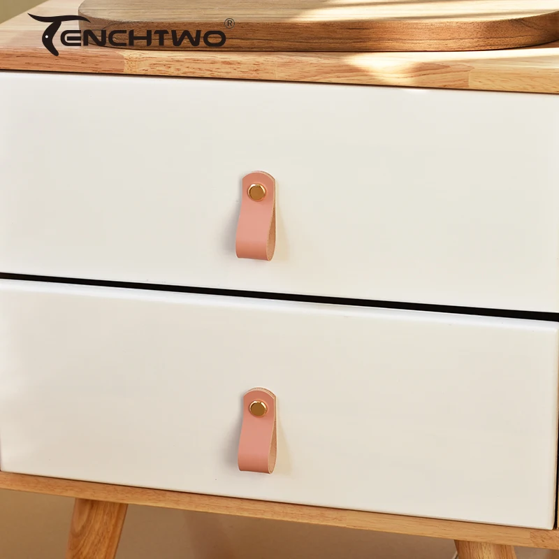 Nordic Style Pink Leather Handle Furniture Drawer Cupboard Kitchen Cabinet Door Knobs Pull Children's Room Cabinet Handles