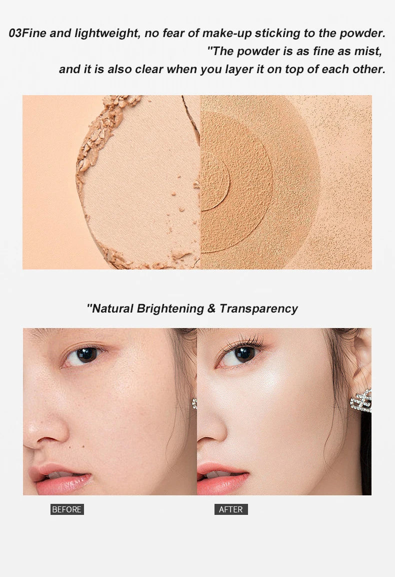 Fine and lightweight, no fear of make-up, the powder is as fine as a mist overlay is also clear.