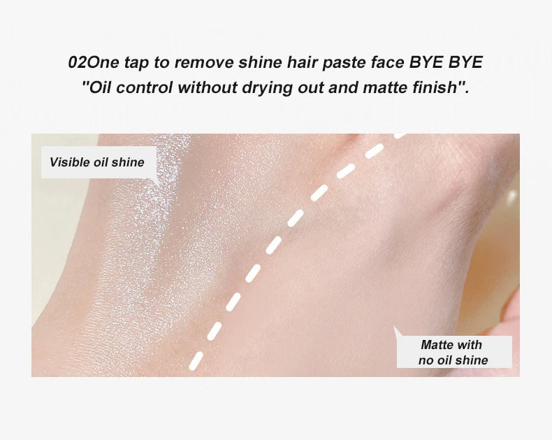 One tap to remove oil shine, oil control without drying out to set the matte make-up feeling.