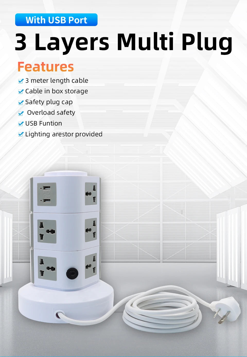 Ổ cắm tháp đa năng OMCH 4 USB, công tắc an toàn