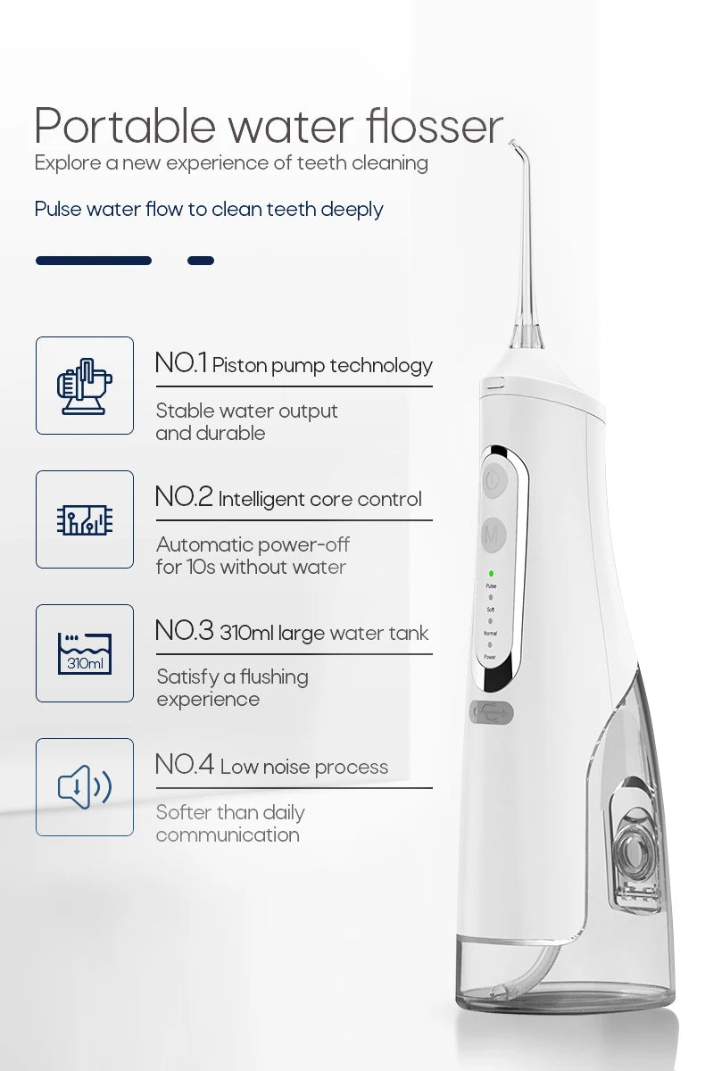 Oral Irrigator USB Rechargeable Water Flosser Portable Dental Water Jet 310ML Water Tank IPX7 Waterproof Teeth Cleaner Travel