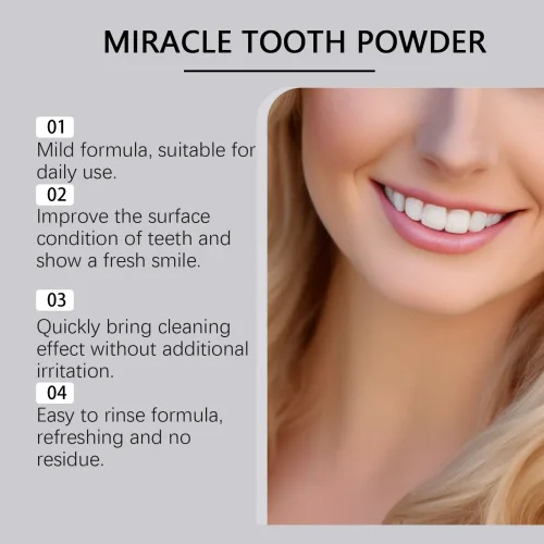 Our peppermint dental powder contains sodium bicarbonate and sorbitol. It can reduce the stains on the surface of the teeth and show the charm of a white smile. Bring lasting freshness and improve oral comfort. Its use is simple: rinse your mouth with water to moisten your teeth. Put an appropriate amount of tooth powder on a wet toothbrush and brush for 2-3 minutes. Rinse your mouth with water until clean. And it can improve the whiteness of your teeth, restore a healthy glow, and make your smile more confident and attractive.