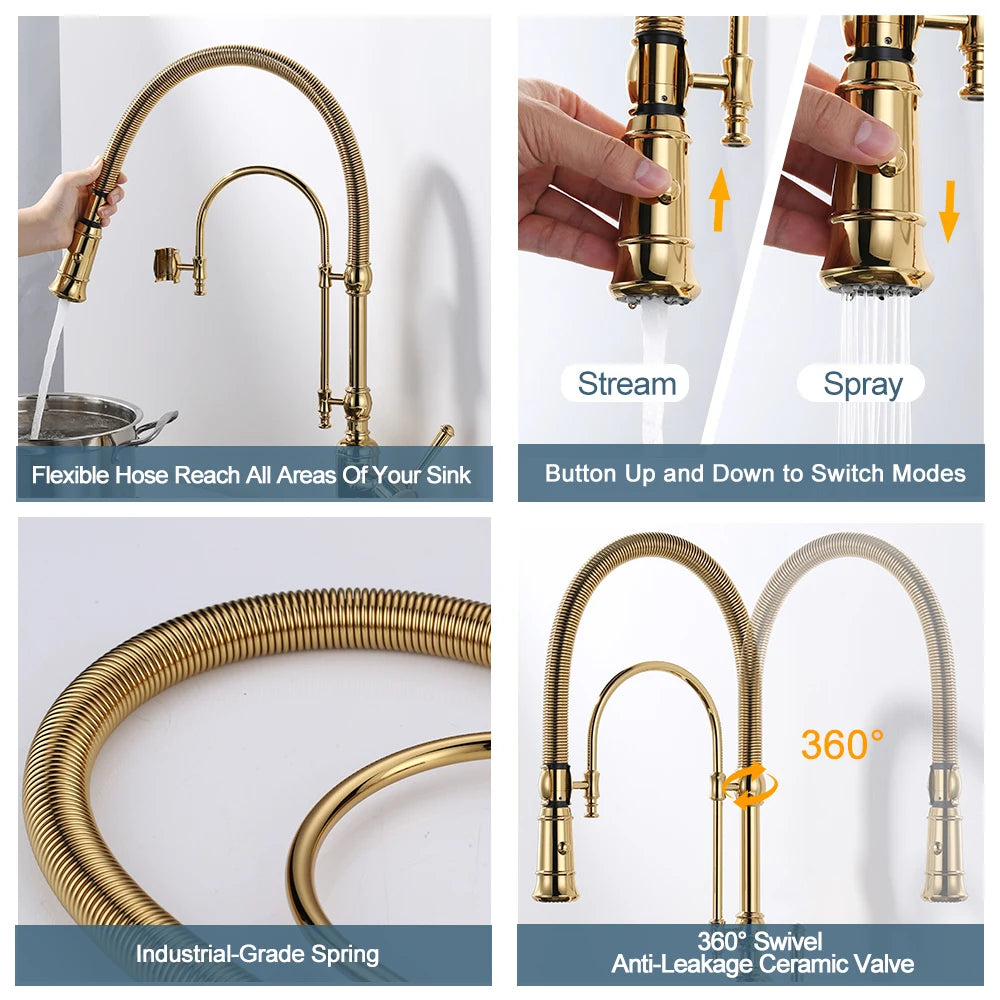 Vòi Chậu Bếp Cao Cấp Titan Vàng Với Đầu Xịt
