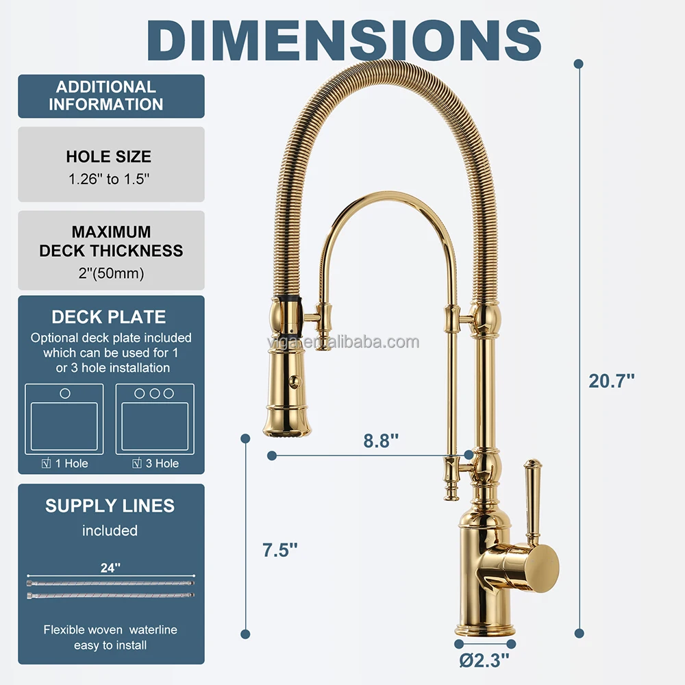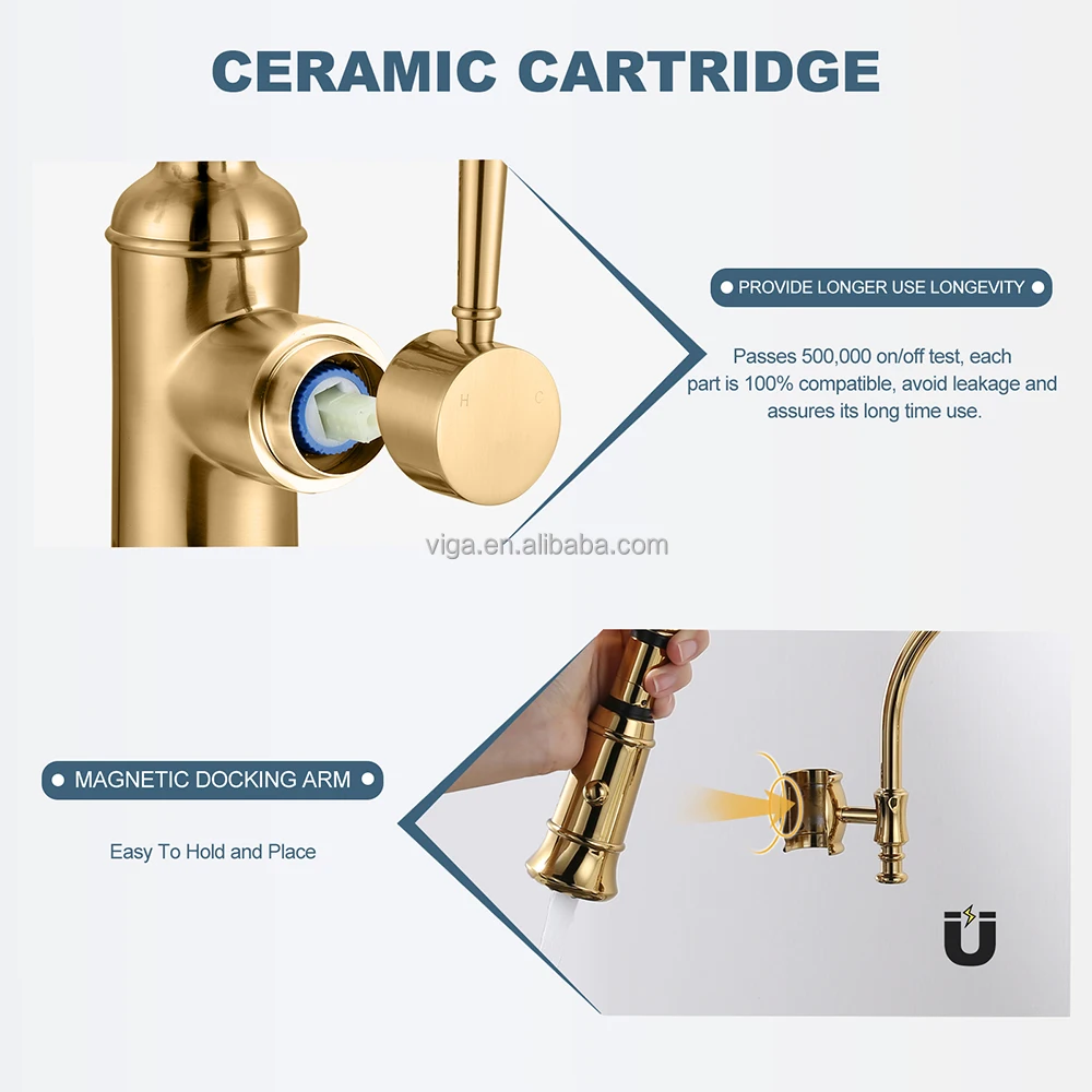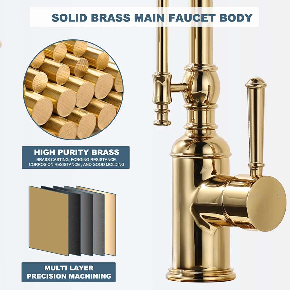 Lead free.Multi-layer titanium gold finish, superior corrosion and rust-resistant effect. |