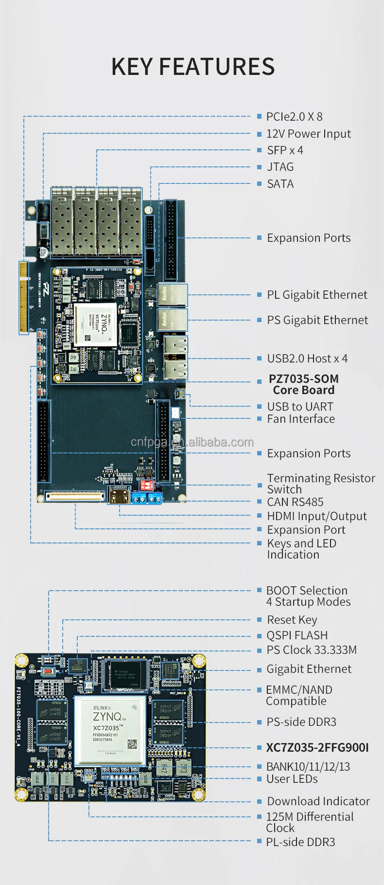 PuZhi PZ7035-KFB 900I Evaluation Kit Xilinx Zynq-7000 SoC XC7Z035 FPGA Development Board PCIe SFP USB ZC706 |