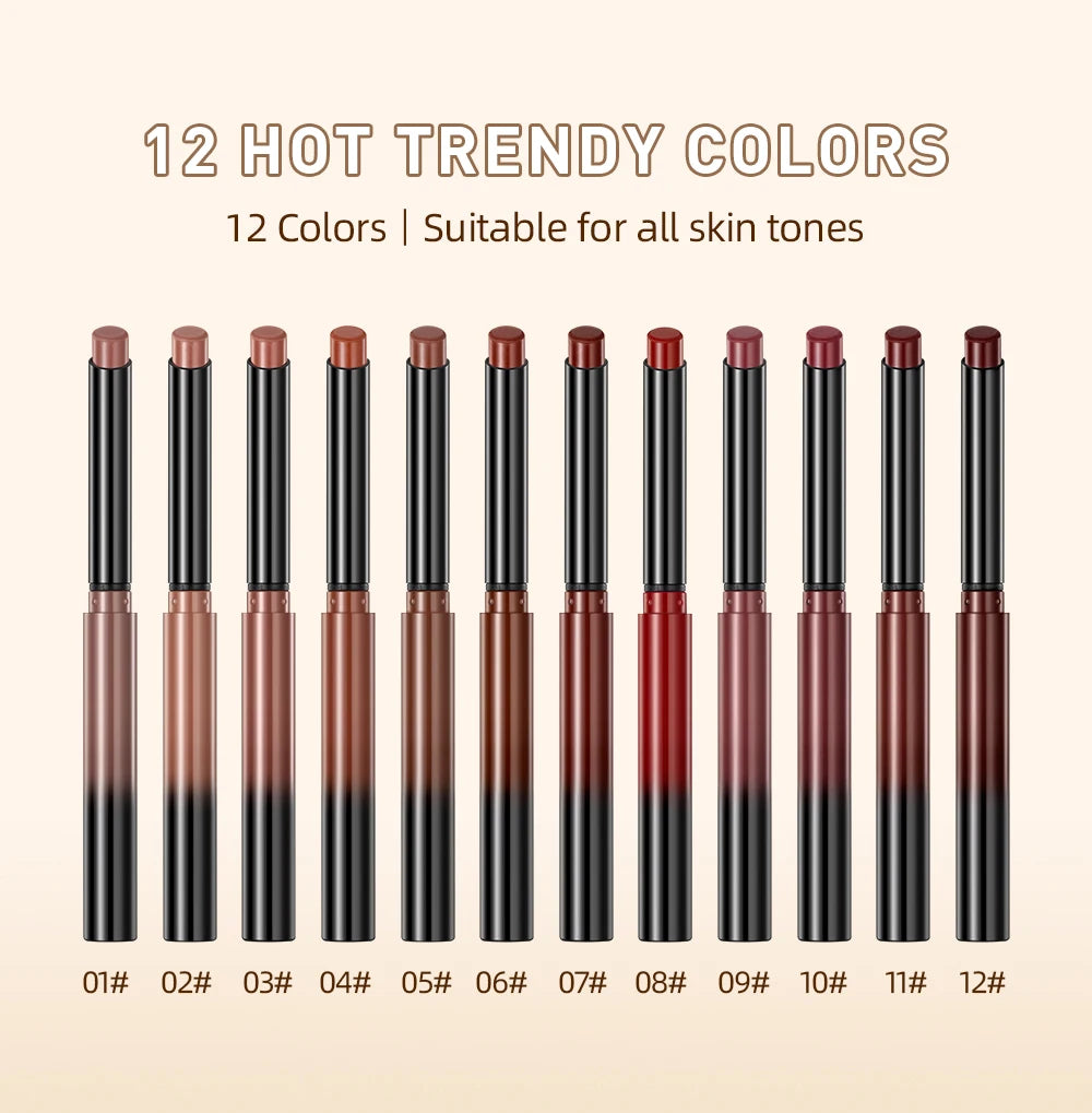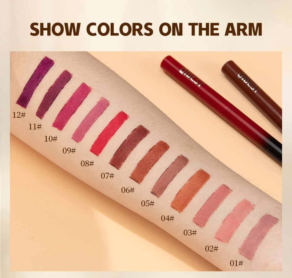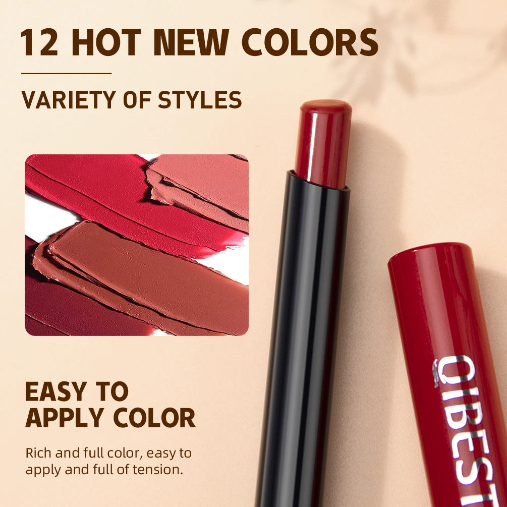 Bút Son Lì QIBEST 12 Màu Dưỡng Ẩm Lâu Trôi