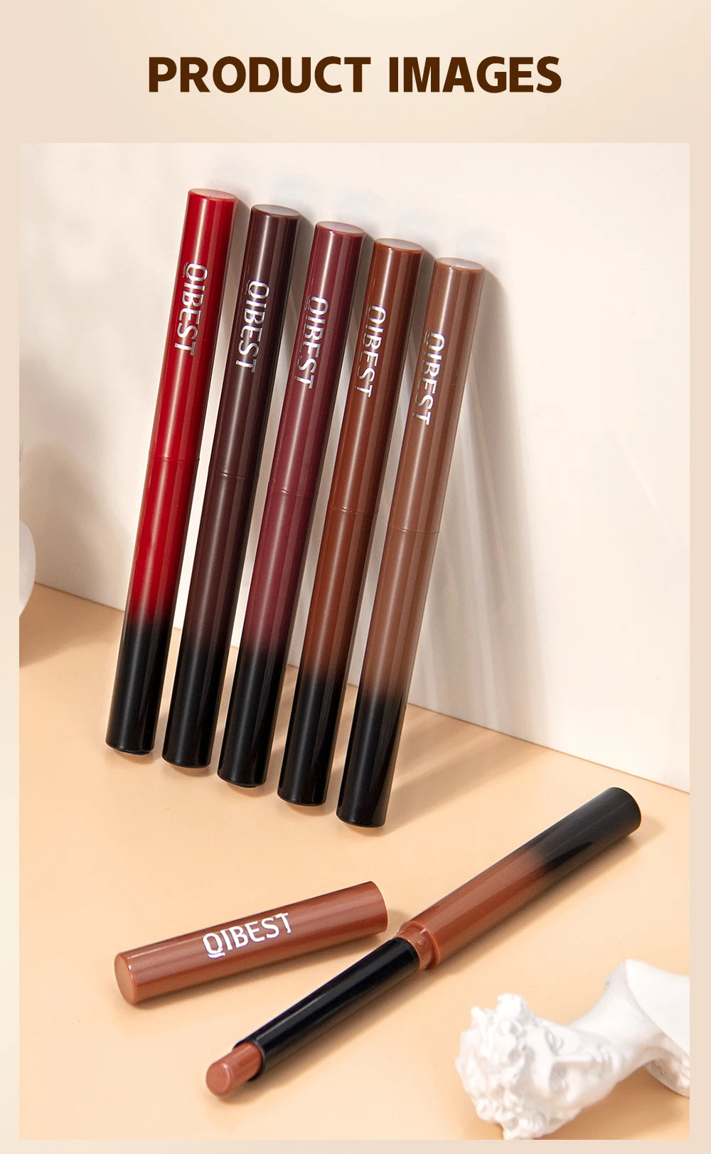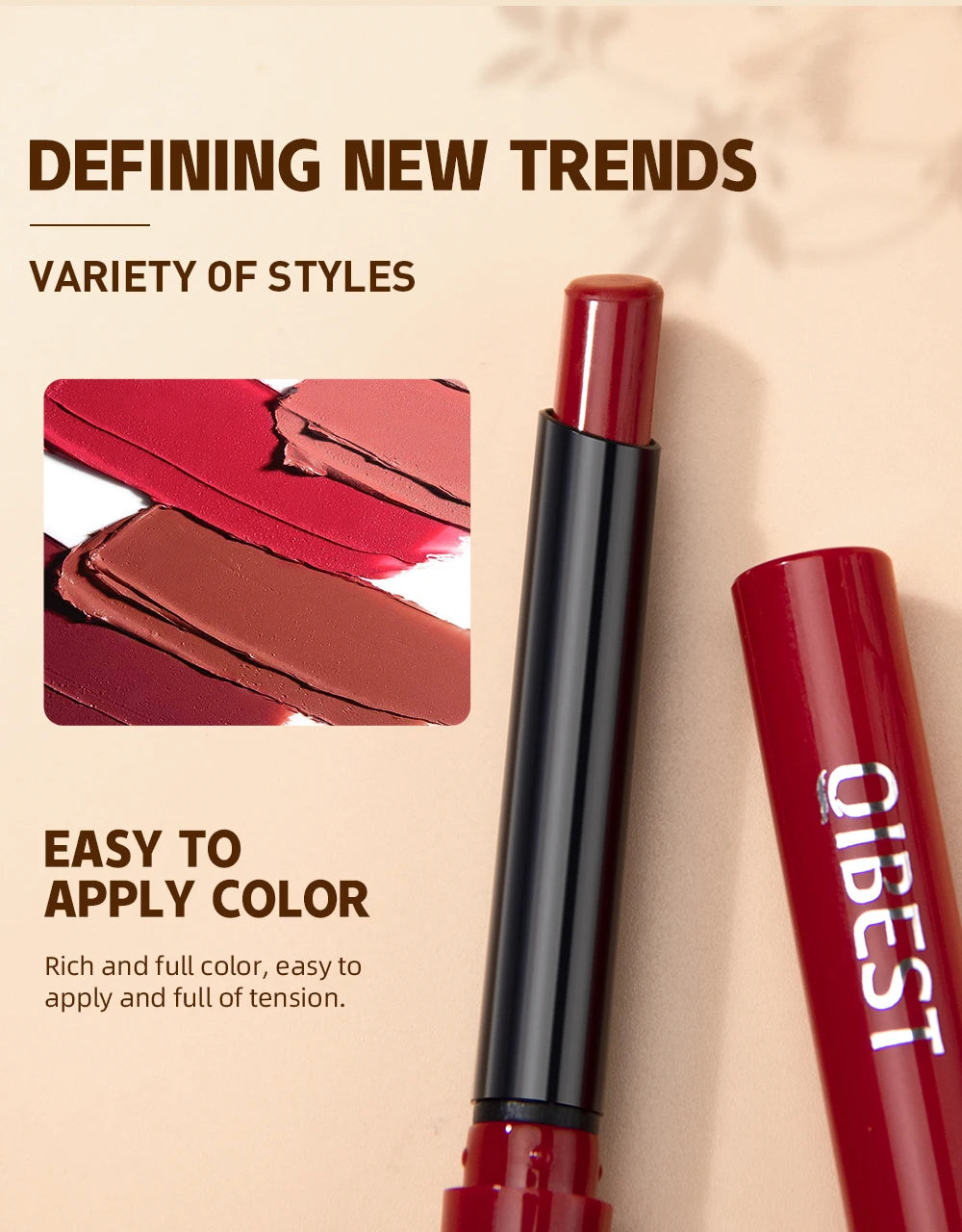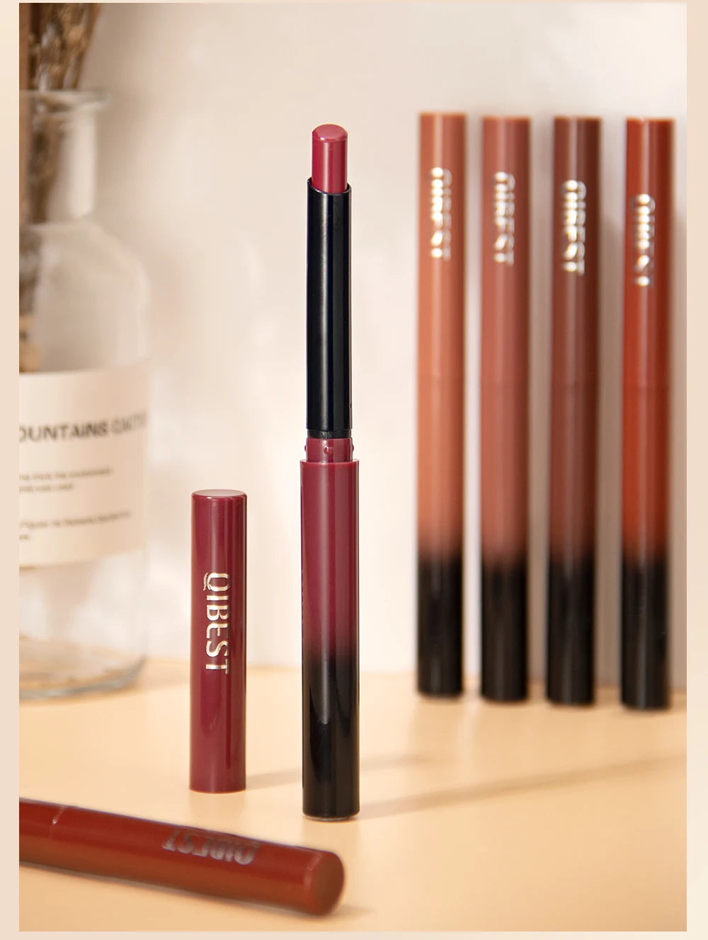 Bút Son Lì QIBEST 12 Màu Dưỡng Ẩm Lâu Trôi