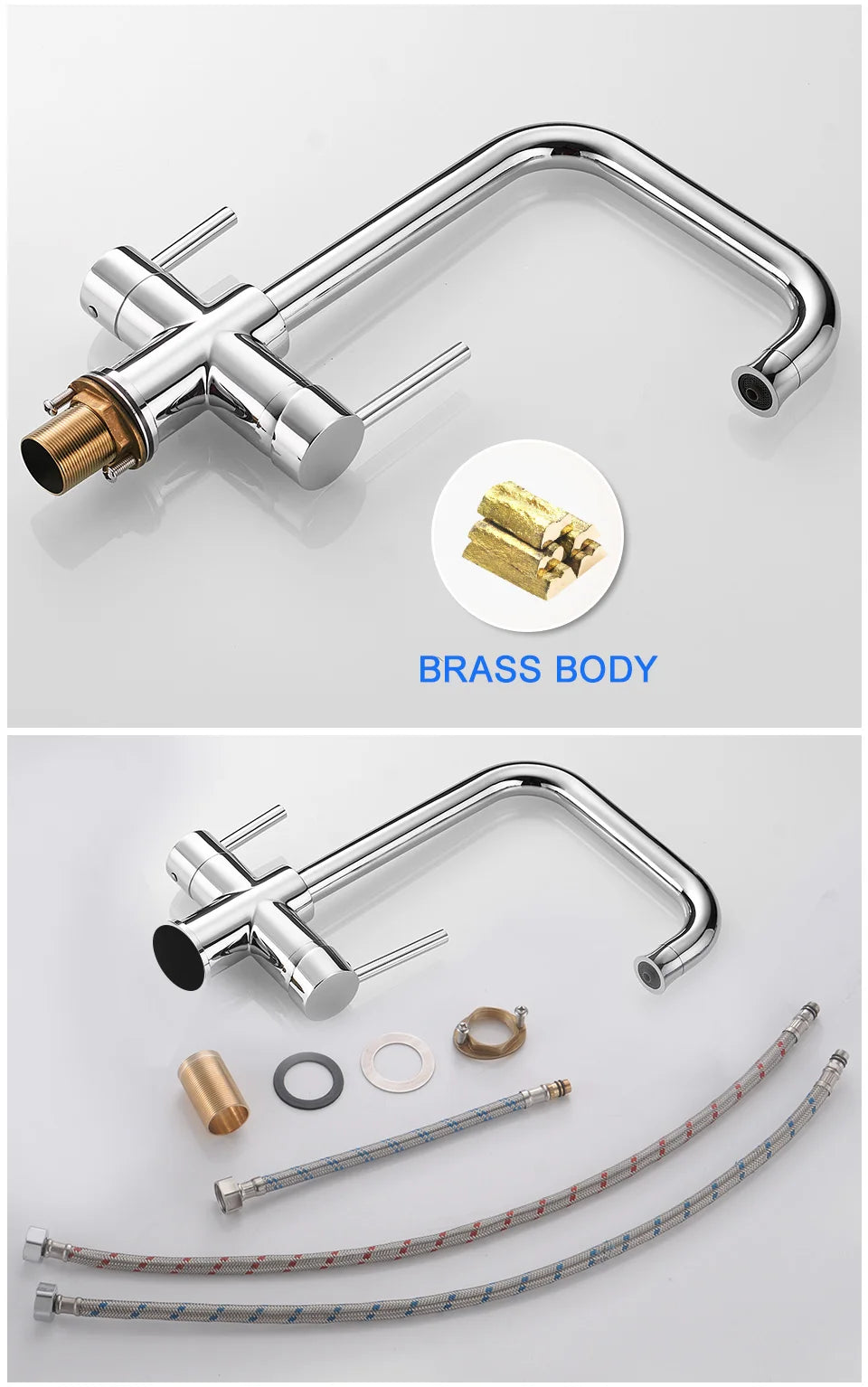 ROVATE Chậu bếp 3 trong 1, Vòi nóng lạnh có lọc nước uống