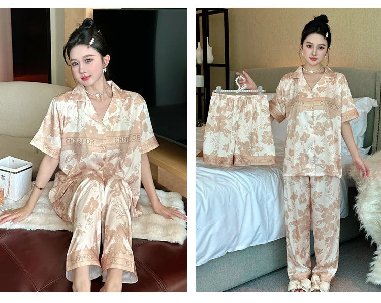 Bộ Đồ Ngủ Nữ Lụa 3 Món Hoa Ngọt Ngào Sang Trọng
