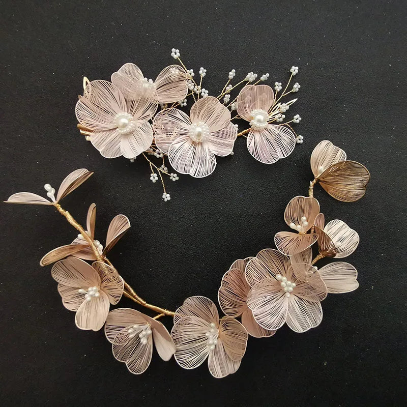 Bộ Kẹp Tóc Cưới Đính Hoa Ngọc Trai Thủ Công SLBRIDAL
