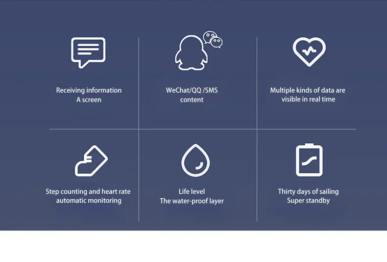 Function: Passometer,fitness tracker,sleep tracker,Message Reminder,Call Reminder,REMOTE CONTROL,Alarm Clock,week,Heart Rate Tracker,Activity Tracker