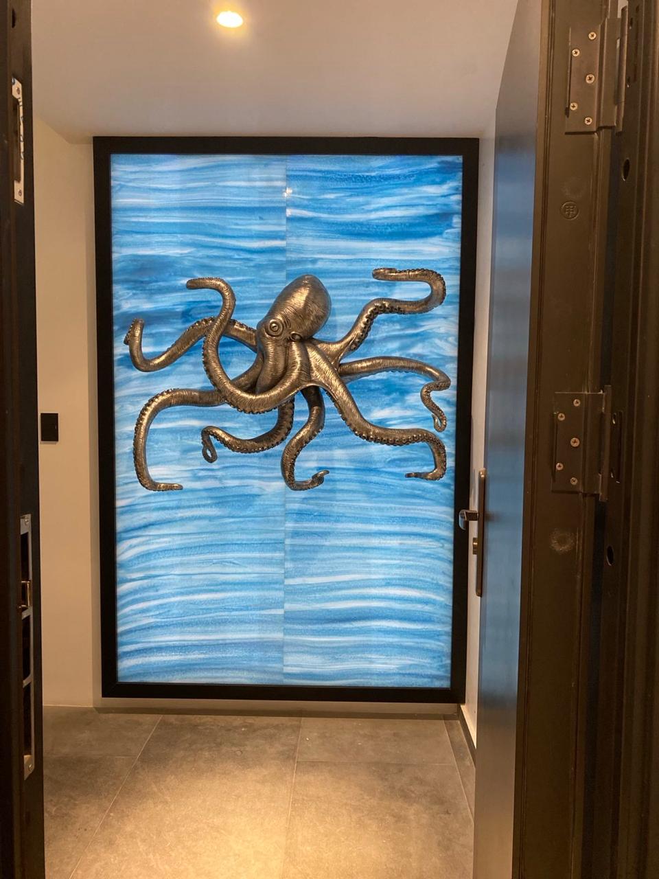 Tấm nhựa acrylic đá xuyên sáng màu xanh lam, ốp tường, vân cẩm thạch onyx trang trí tường