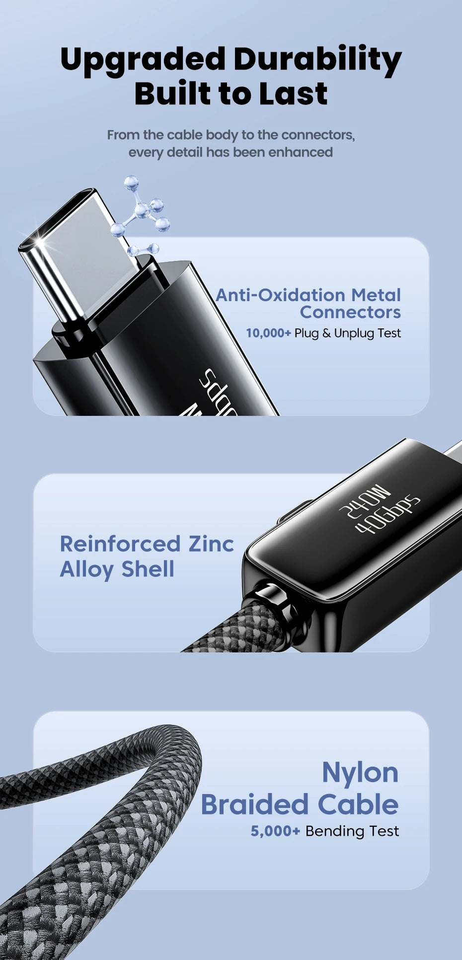 240W 4-in-1 Data Cable:Fast charging, data transfer, and video display, all in one