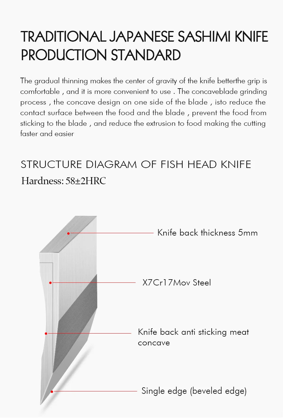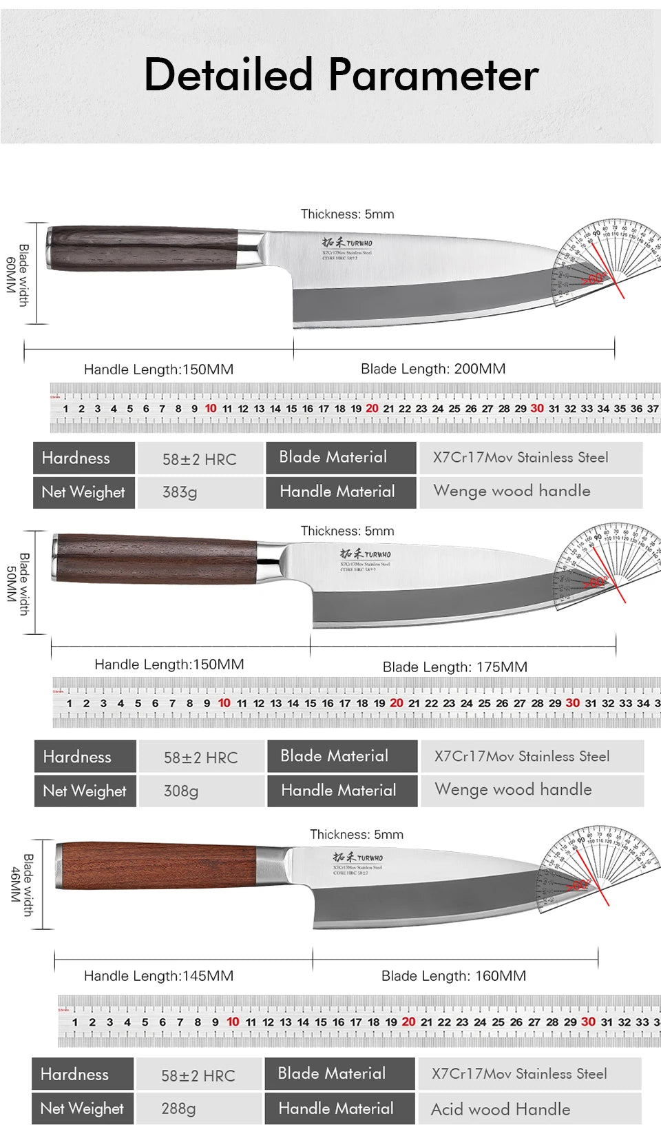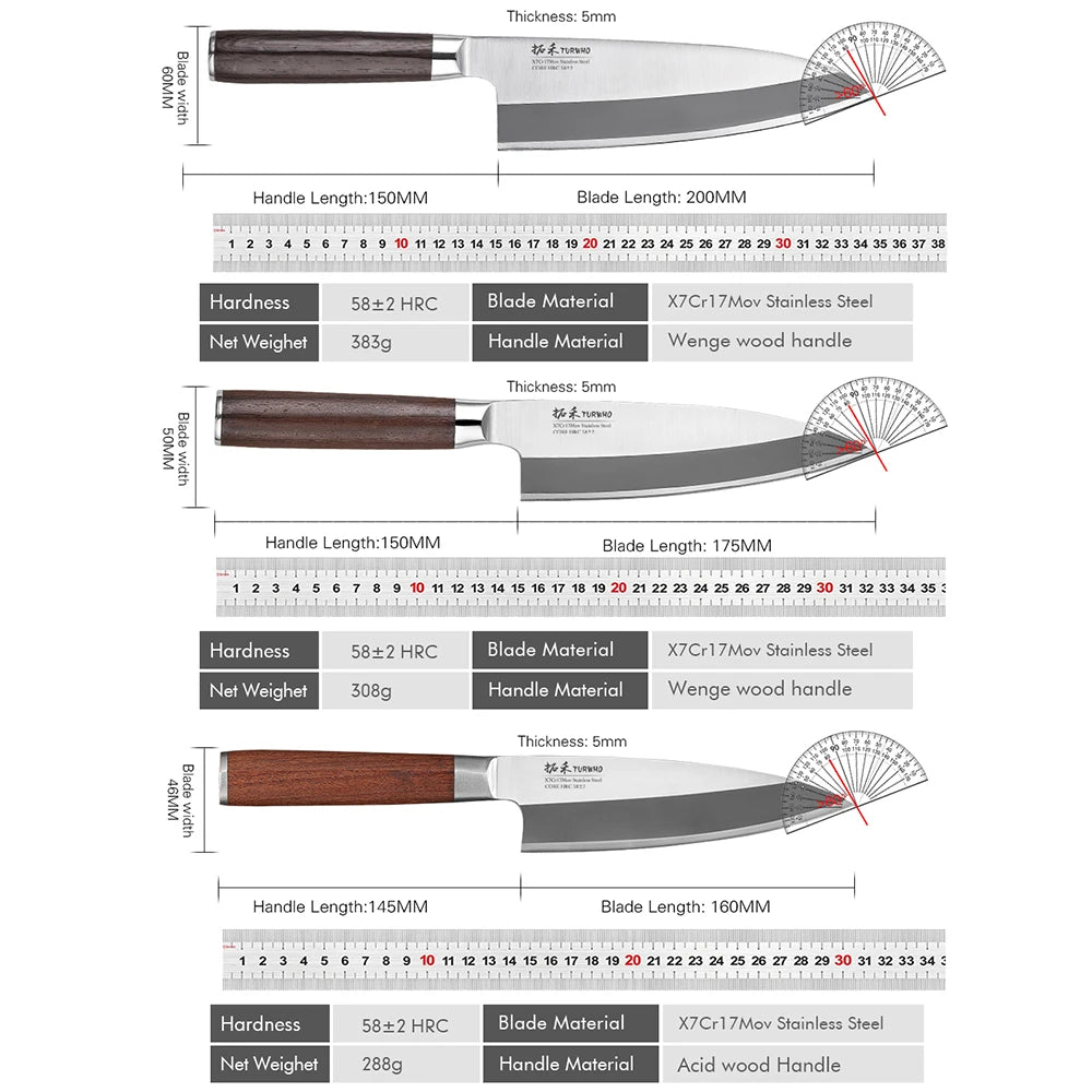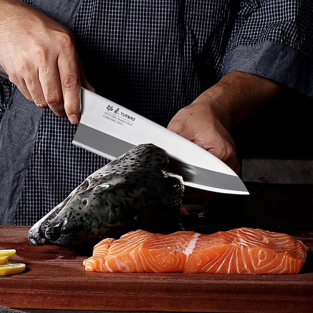 TURWHO Kitchen Knives Yanagiba Fish Head Cleaver Chef Knives Japanese Sashimi Knife Deba Salmon Sushi Filleting Kitchen Tools
