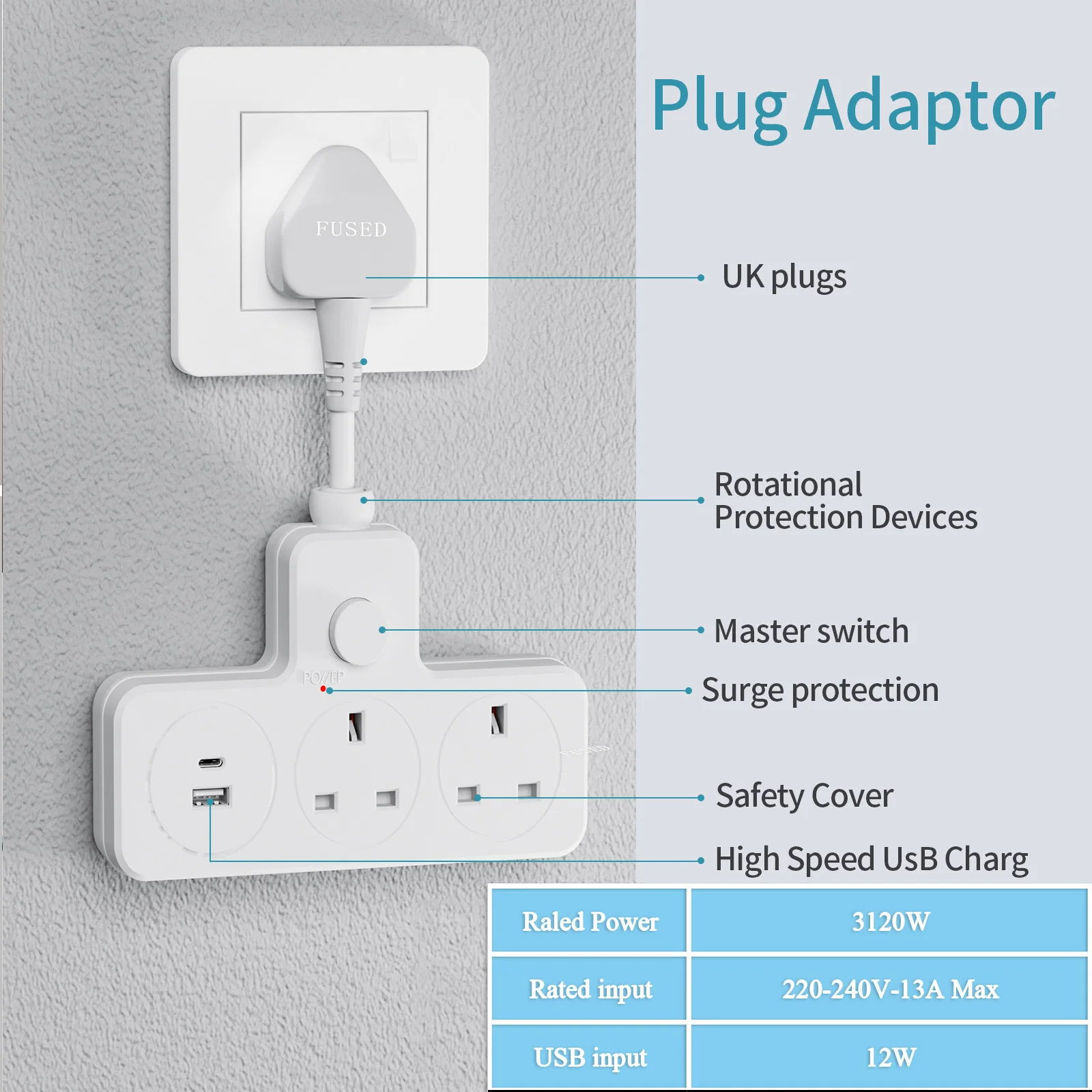 Introducing the LIPWEL UK Power Plug Wall Outlet Soft Cord, a versatile and innovative power solution designed for your home, office, and travel needs. With a robust capacity of 13A and 3120W, this power adapter features a unique one-key control and indicator for ease of use. The flexible cord allows you to swing the outlet, making it ideal for tight spaces and various setups. Equipped with USB power outlets, this power strip extender is perfect for charging multiple devices simultaneously, ensuring you stay connected wherever you are.
