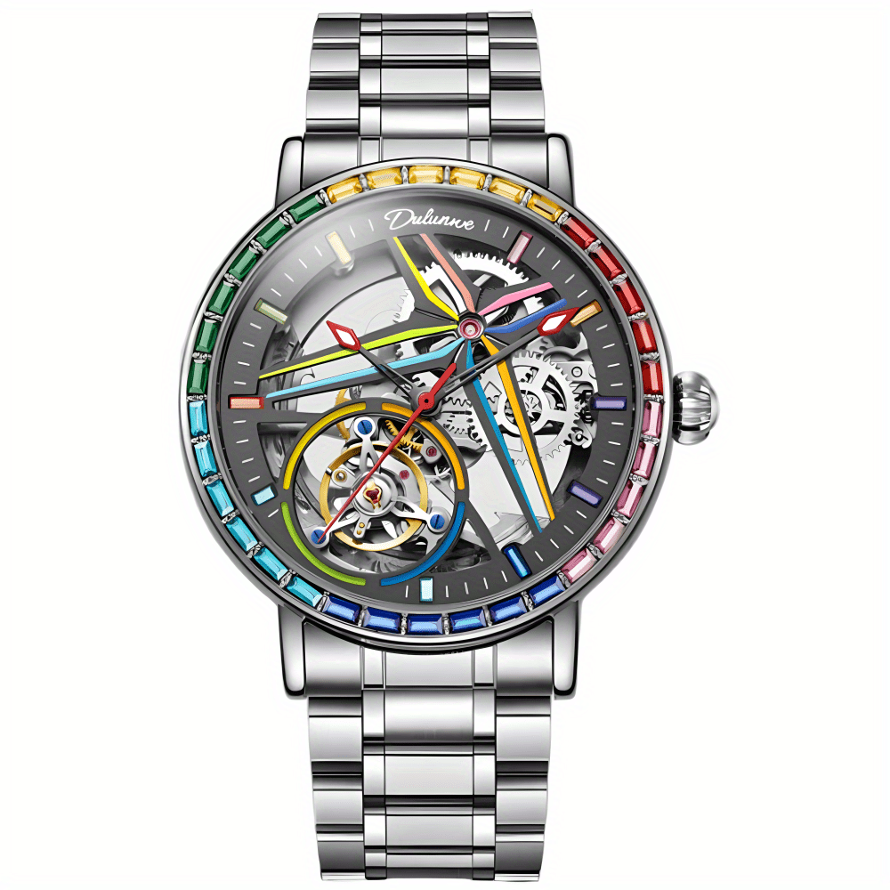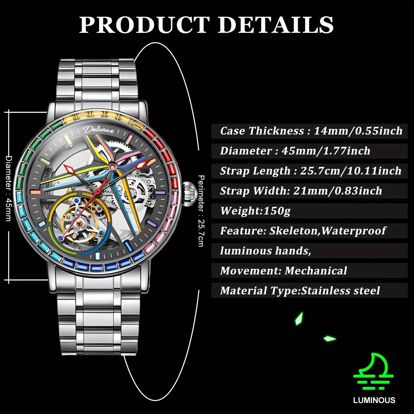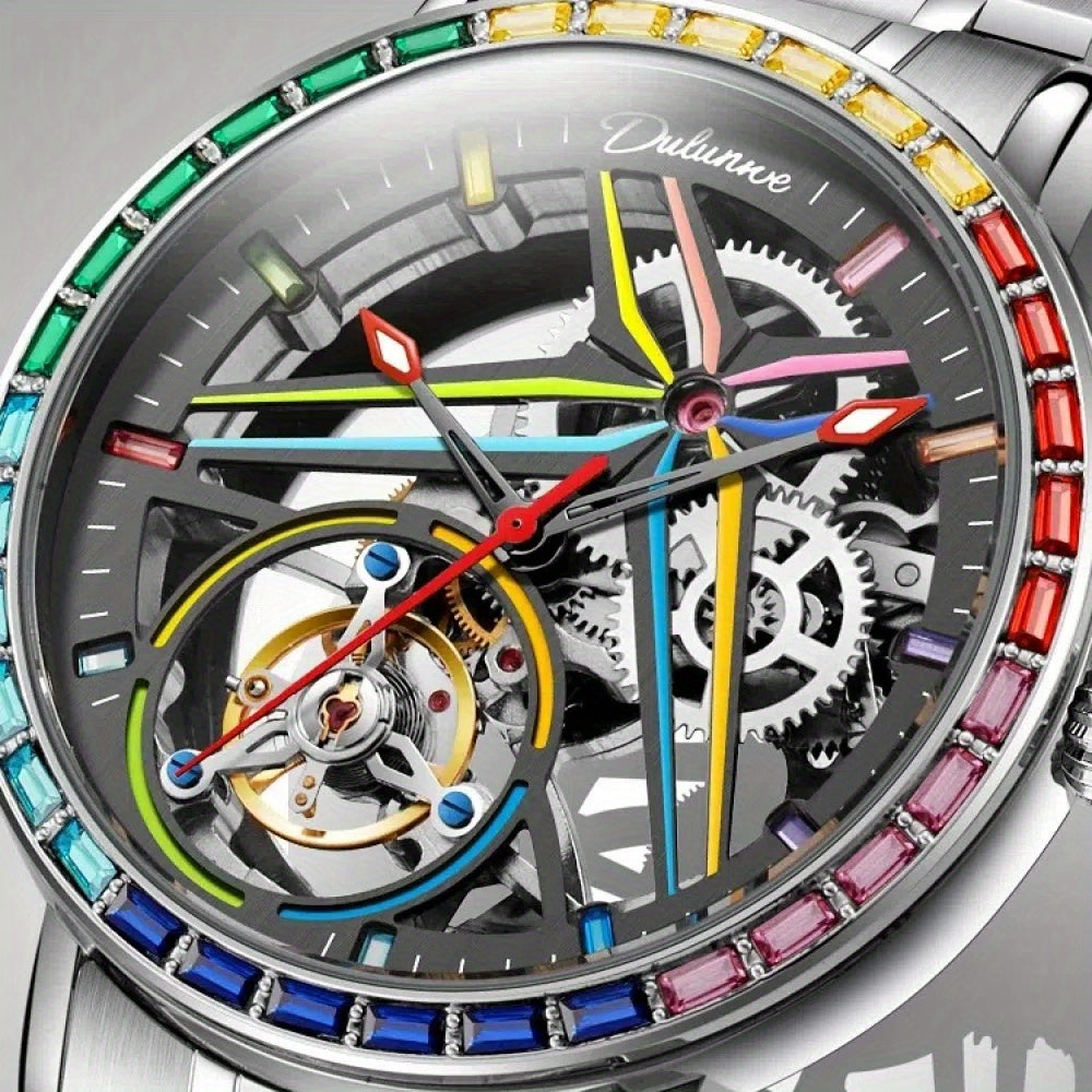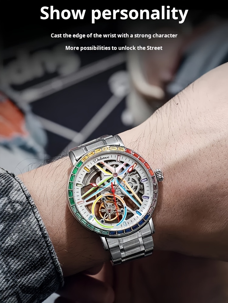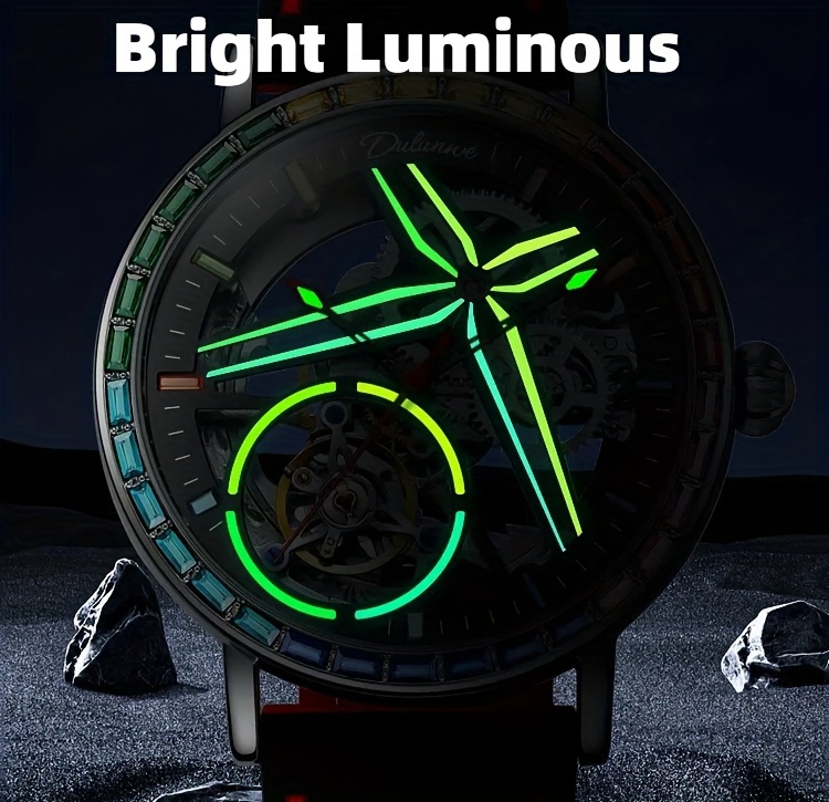 Đồng hồ nam máy cơ lộ máy viền đá quý phát sáng