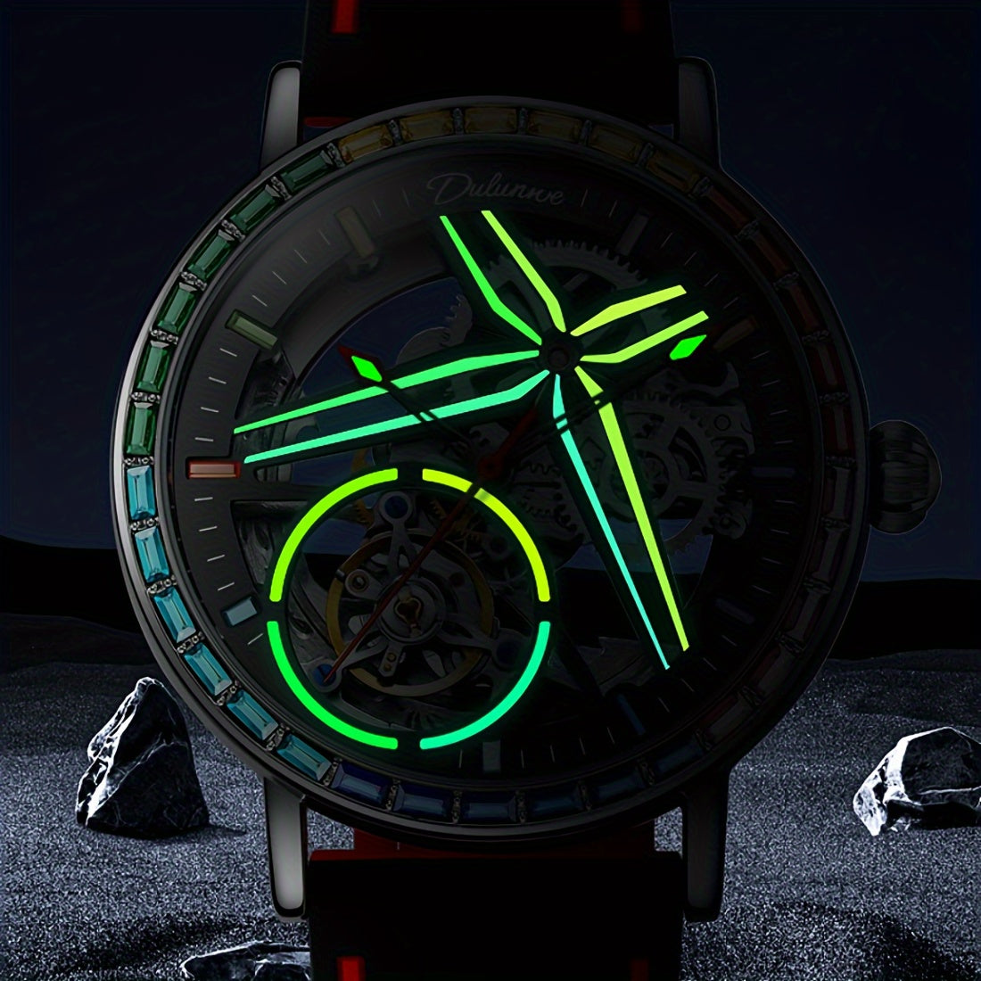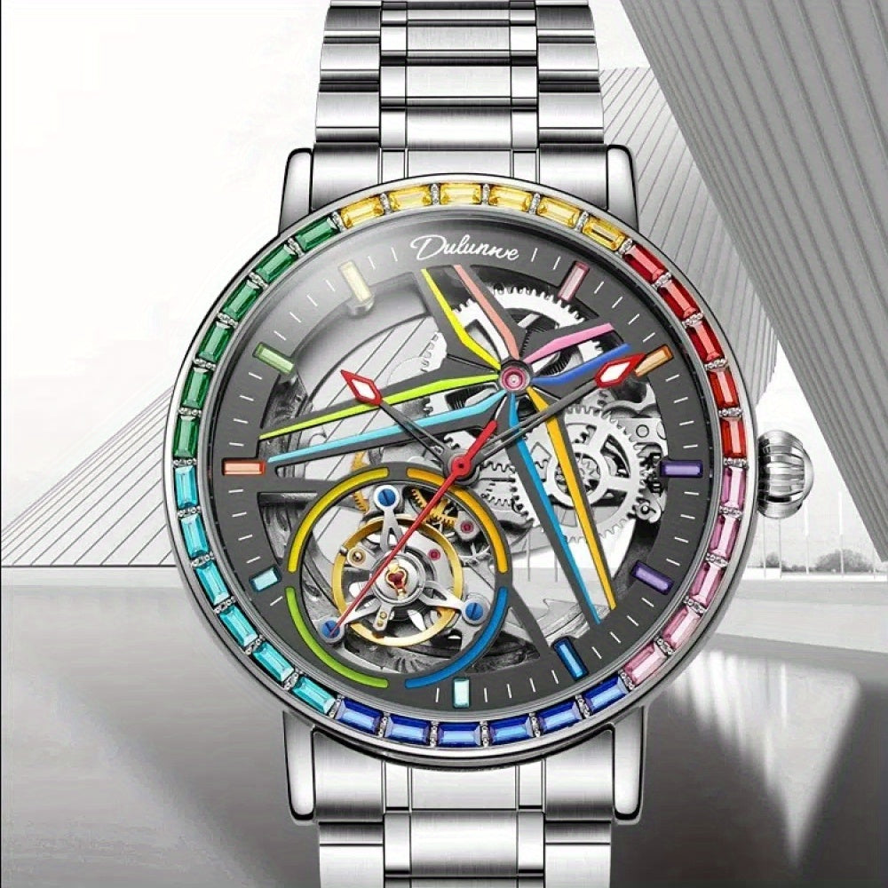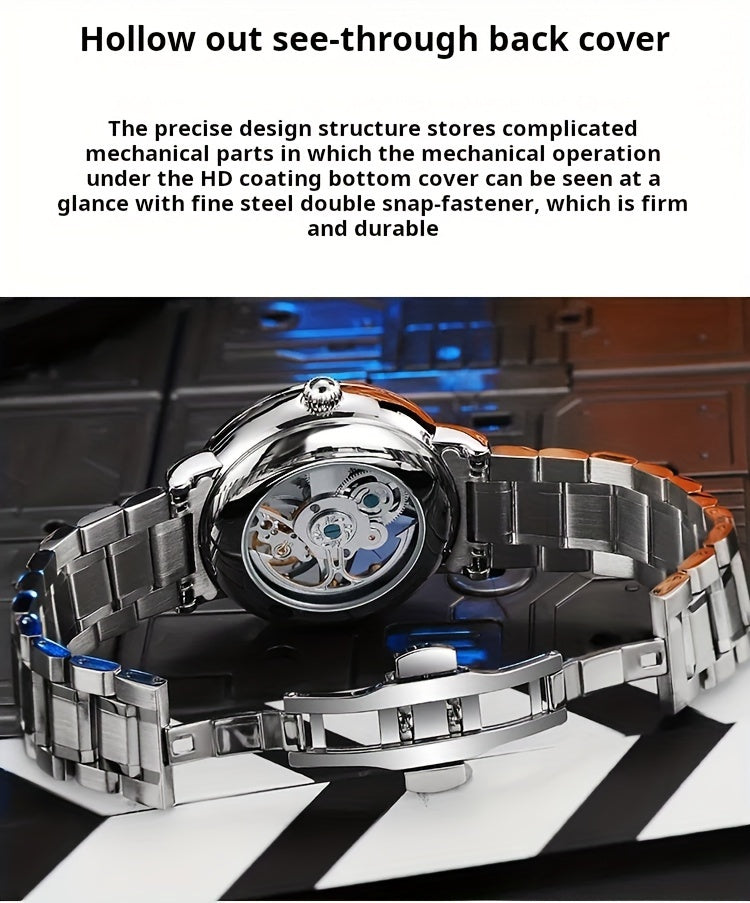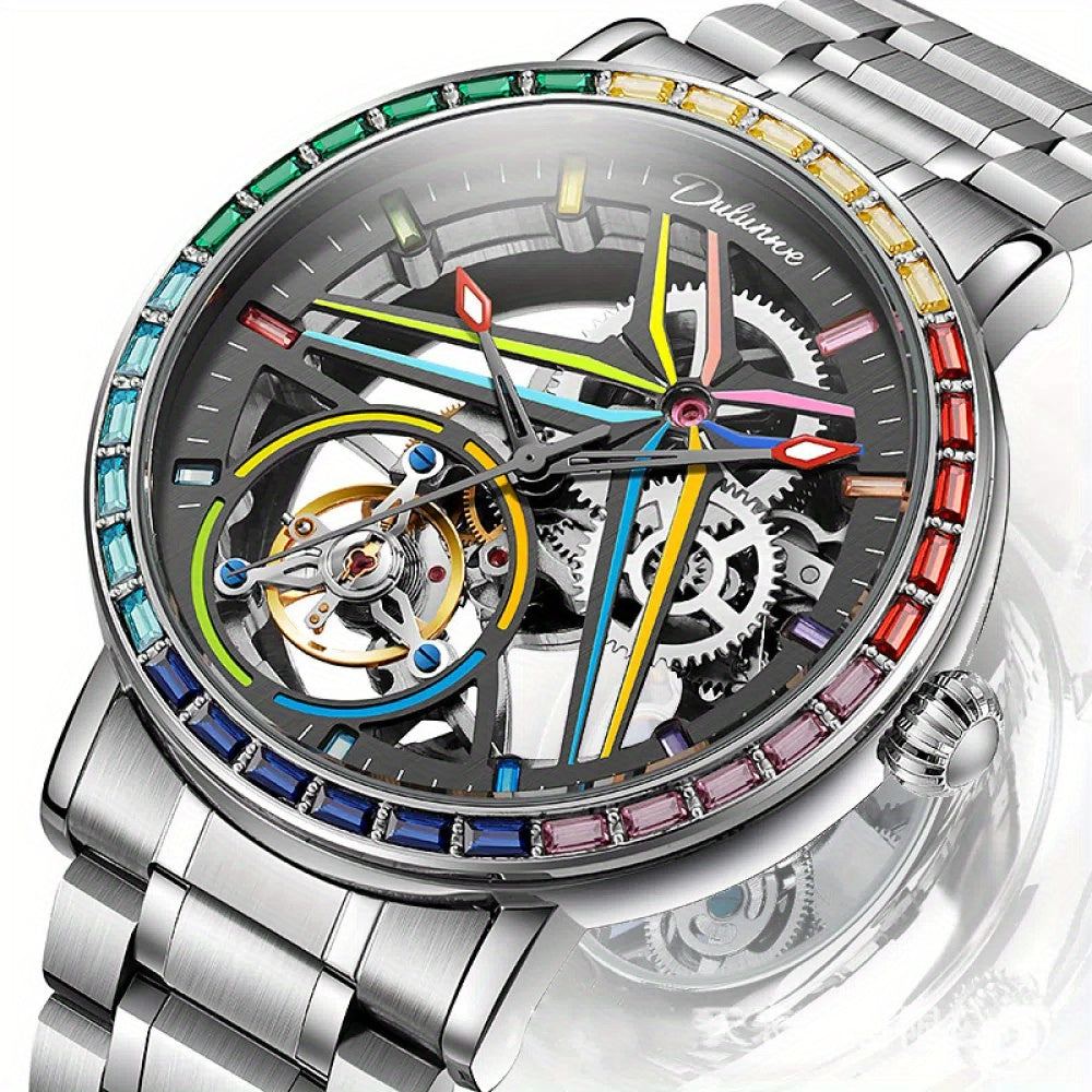 Đồng hồ nam máy cơ lộ máy viền đá quý phát sáng