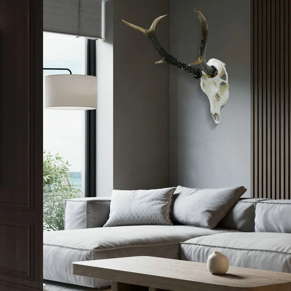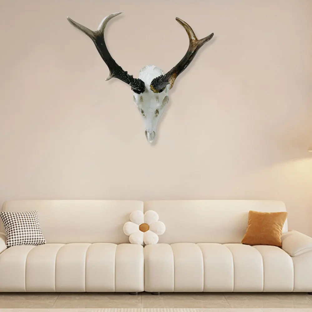 US Stock Resin Deer with Antlers Model Pattern Wall Decor Animal Skeleton Art for Home & Bar