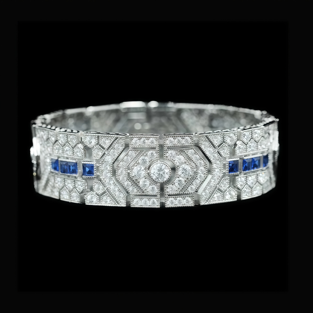 Vòng Tay Moissanite 32.6g Bạc 925 Nam Nữ Dự Tiệc