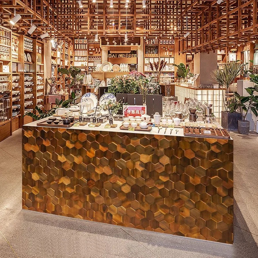 Walnut Wood Mosaic Tile Wall Sticker for TV Background Art Wall Decoration Modern 3D Wood Hexagon Wooden Panel Wall Panel