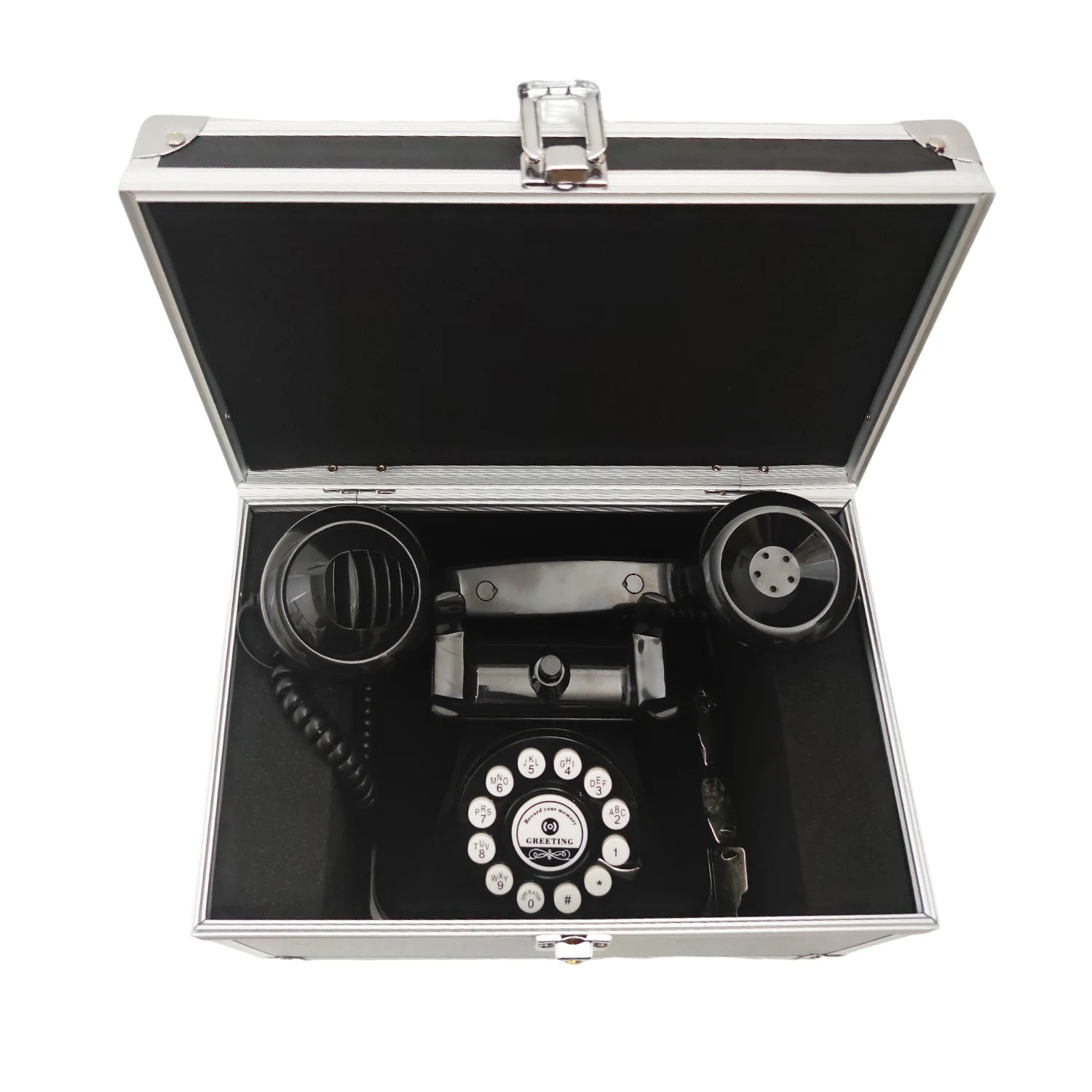 The ordering option “An empty suitcase” only has the Suitcase and does not include the telephone.