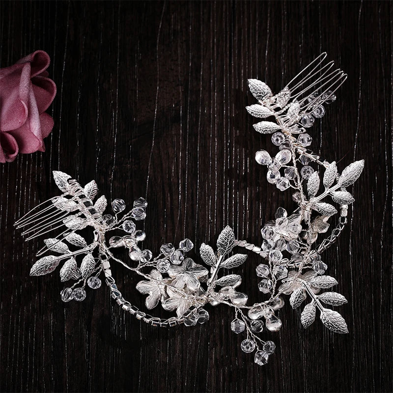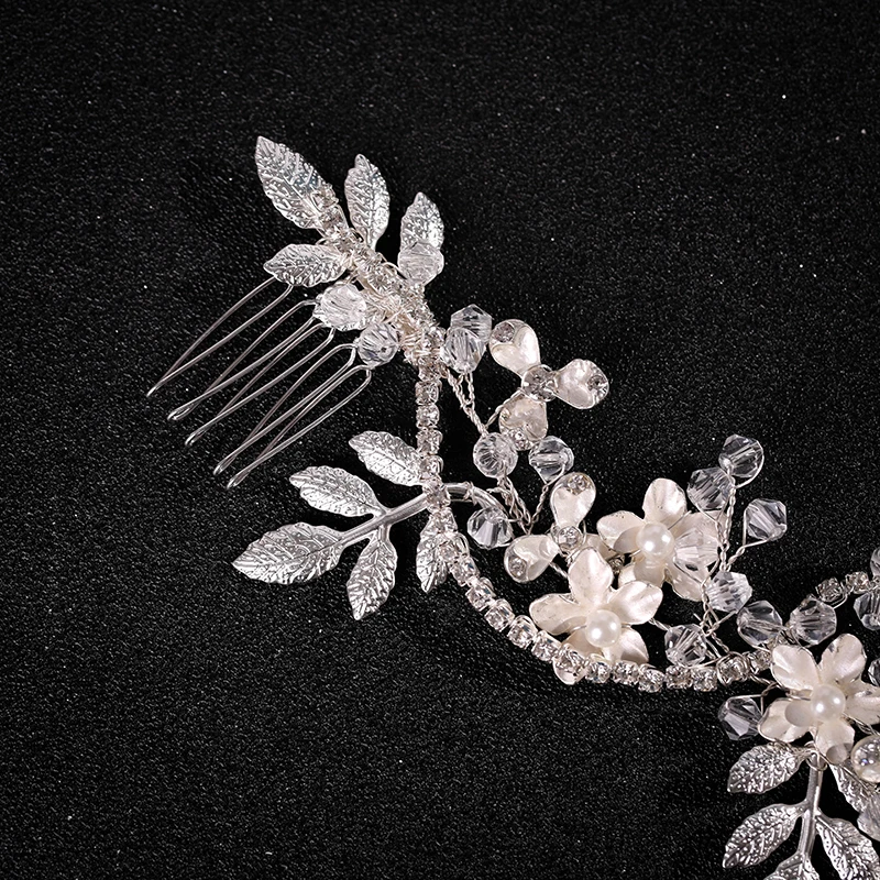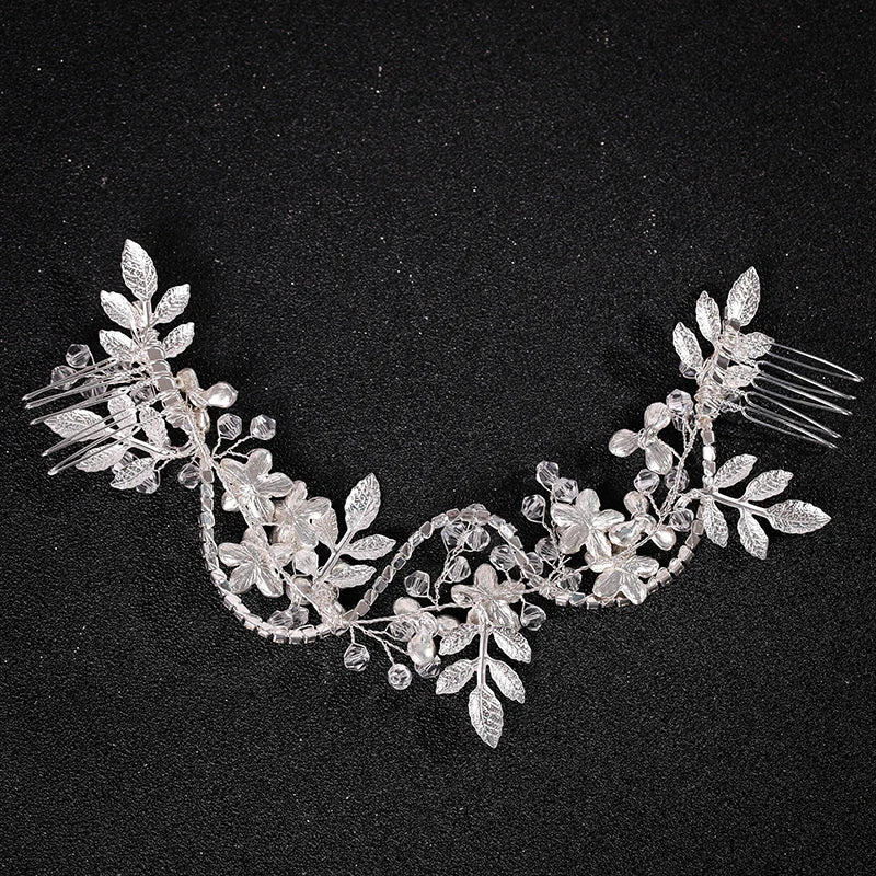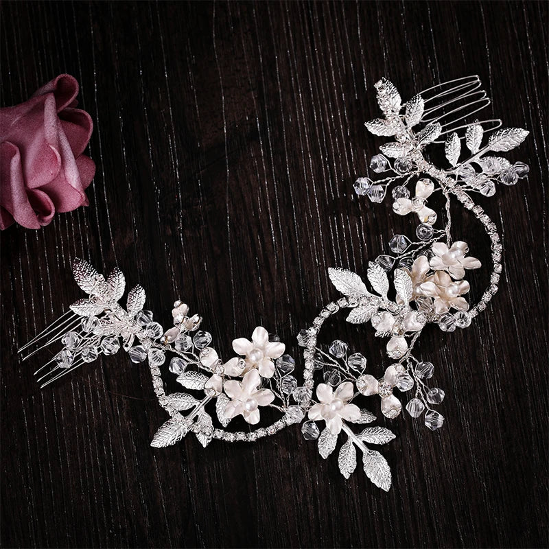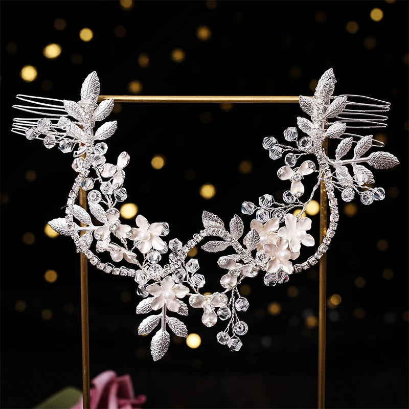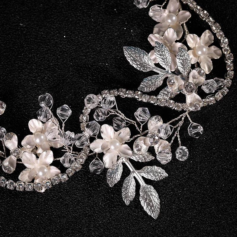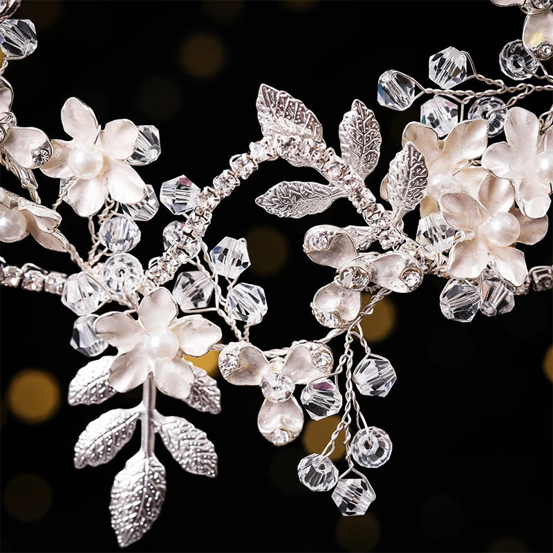 Băng Tóc Cưới Ngọc Trai Pha Lê Hoa Lá Nữ Tính