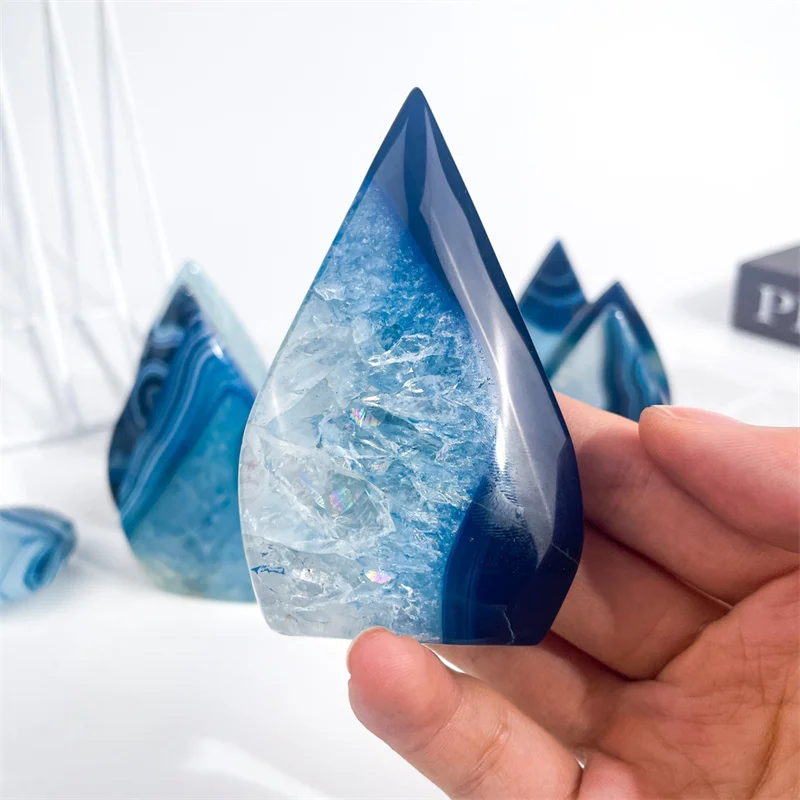 Wholesale Healing Crystal Crafts Blue Sardonyx Flame Blue Onyx Agate Ornament for Decoration